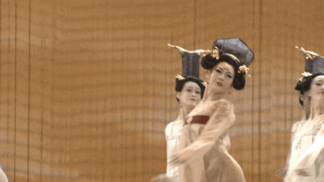 舞剧《杜甫》除了让人惊艳的《丽人行》舞段,还有“挽弓”“春夜喜雨”“三吏三别”等等。为了刻画“安史之乱”时人们内心的麻木与空洞,编导们参照唐朝仕女图中人物的表情和动作,让演员们装扮成十多位面无表情的宫女,跳起舞来。