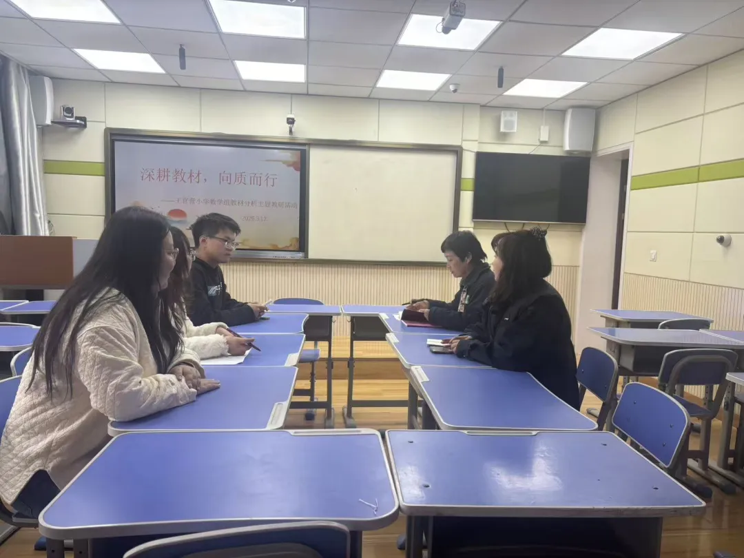 为深入研读新课标理念,精准把握各年级教材编排逻辑与教学重点,夯实课堂教学根基,王官营小学数学组于3月12日开展以“深耕教材,向质而行”为主题的教材分析研讨会。全体数学教师参与了此次活动。