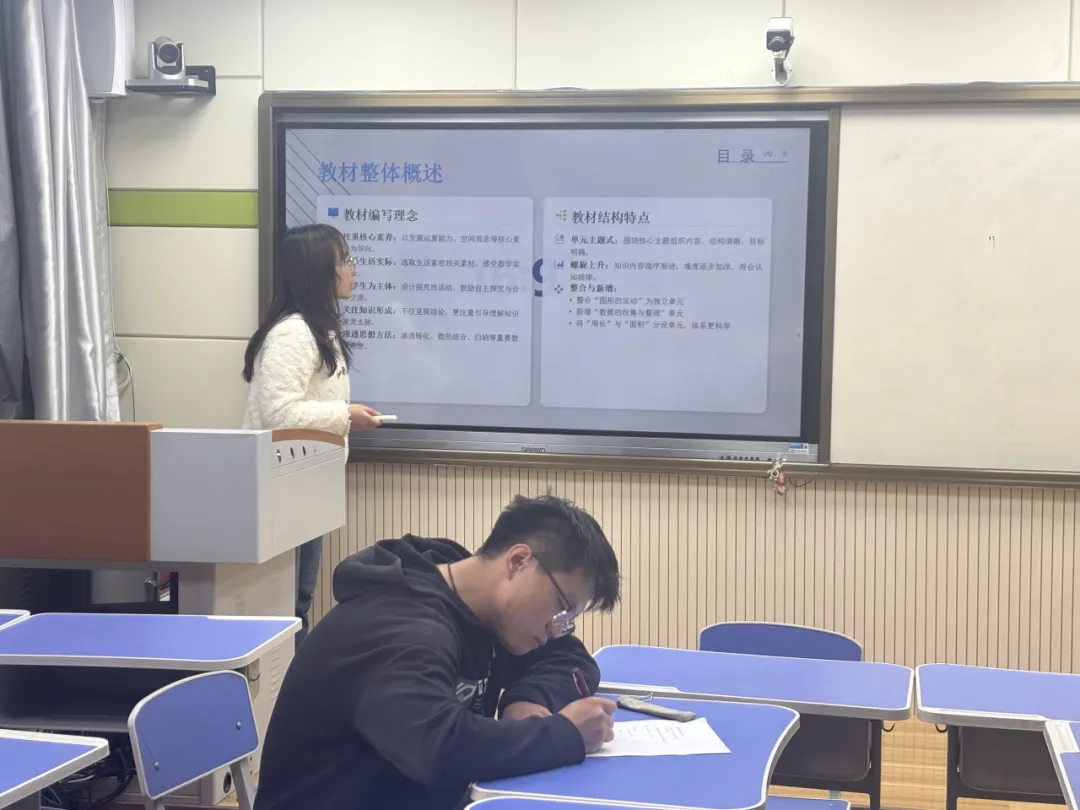 本次活动以“纵向贯通知识体系,横向对比学段要求”为思路。各位数学教师分年级从“全册教材解读”、“单元重点难点”、“学生核心素养培养点”及“教学实施建议”四个方面进行了深入剖析,旨在通过深耕教材,推动教学质量迈向新台阶。