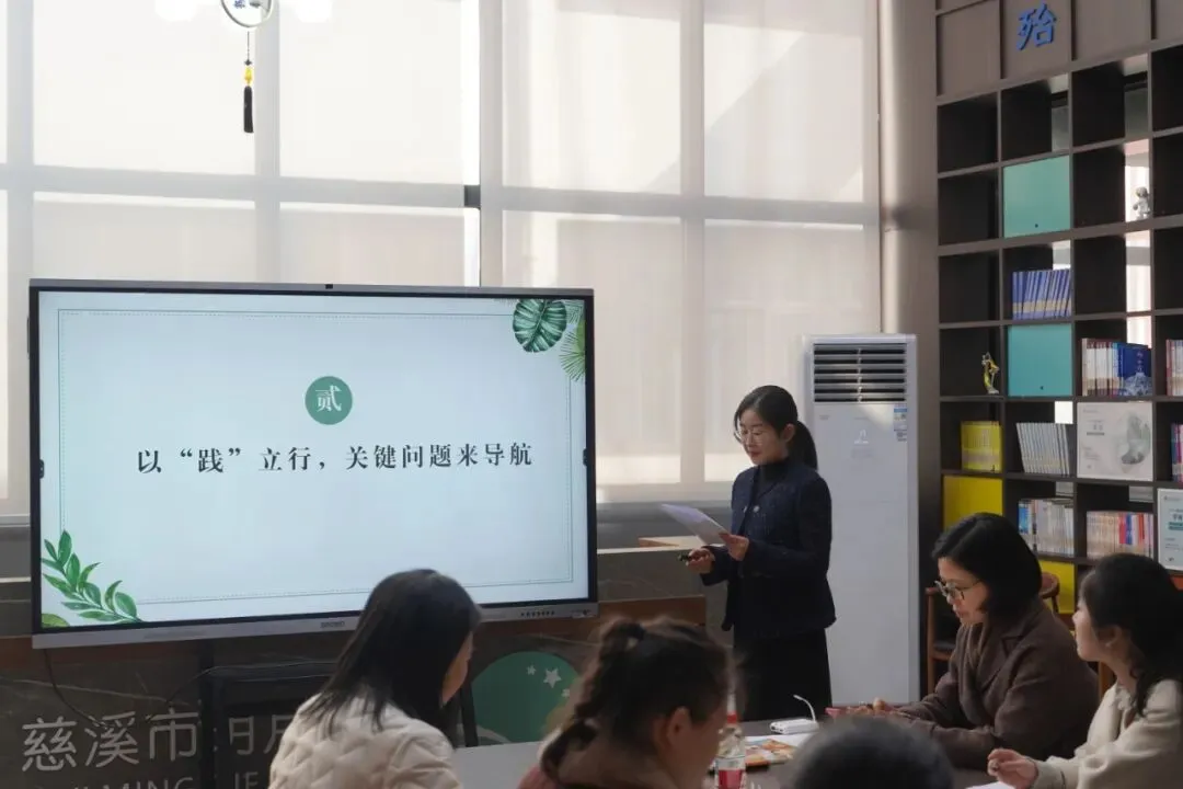 教研组组长余燕伶老师以“聚焦关键问题,开展课例研究”为主题,从“以‘训’赋能,三级培训有保障”“以‘践’立行,关键问题来导航”“以‘效’促能,教学成果见真章”三个方面介绍学校新修订教材研训实践。