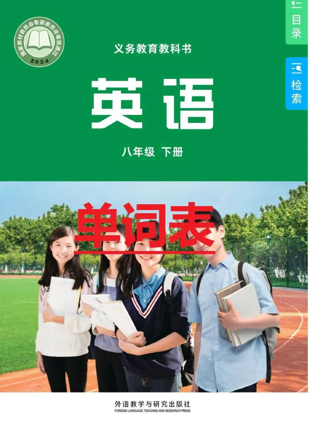 外研社版初中英语八年级下册电子课本教材+单词表+单词默写表+听力音频完整版(2026年新版教材),可下载打印!