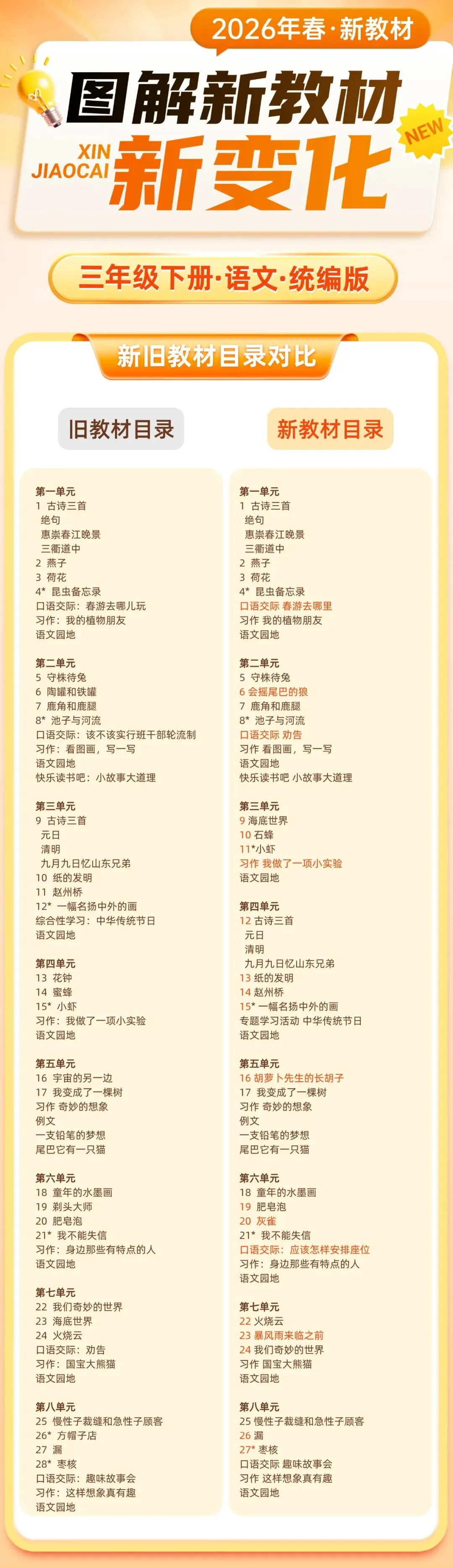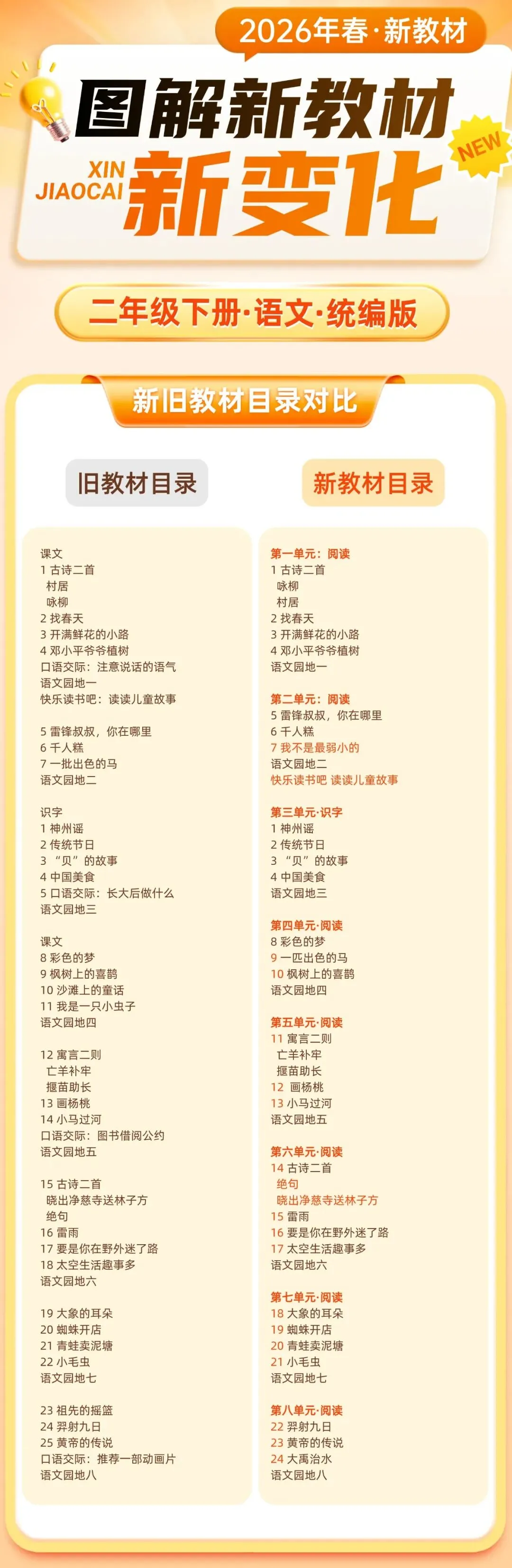 整体上看,今年小学二三年级语文新课本有大幅增删和顺序调整;三年级数学和四年级英语课本直接全新!