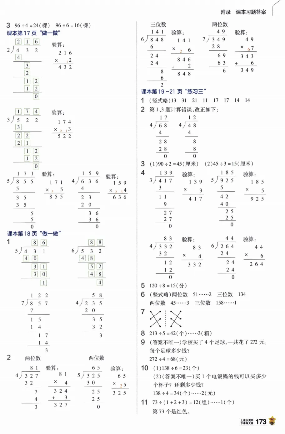 2026春季新版教材小学三年级下册数学课后习题参考答案(人教版)电子版已更新(彩色高清PDF,可打印)