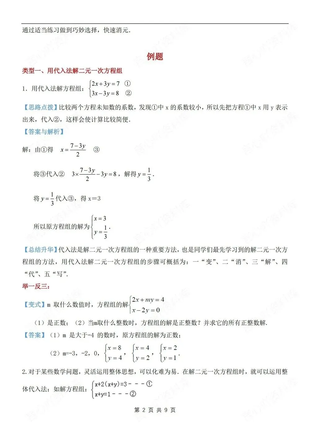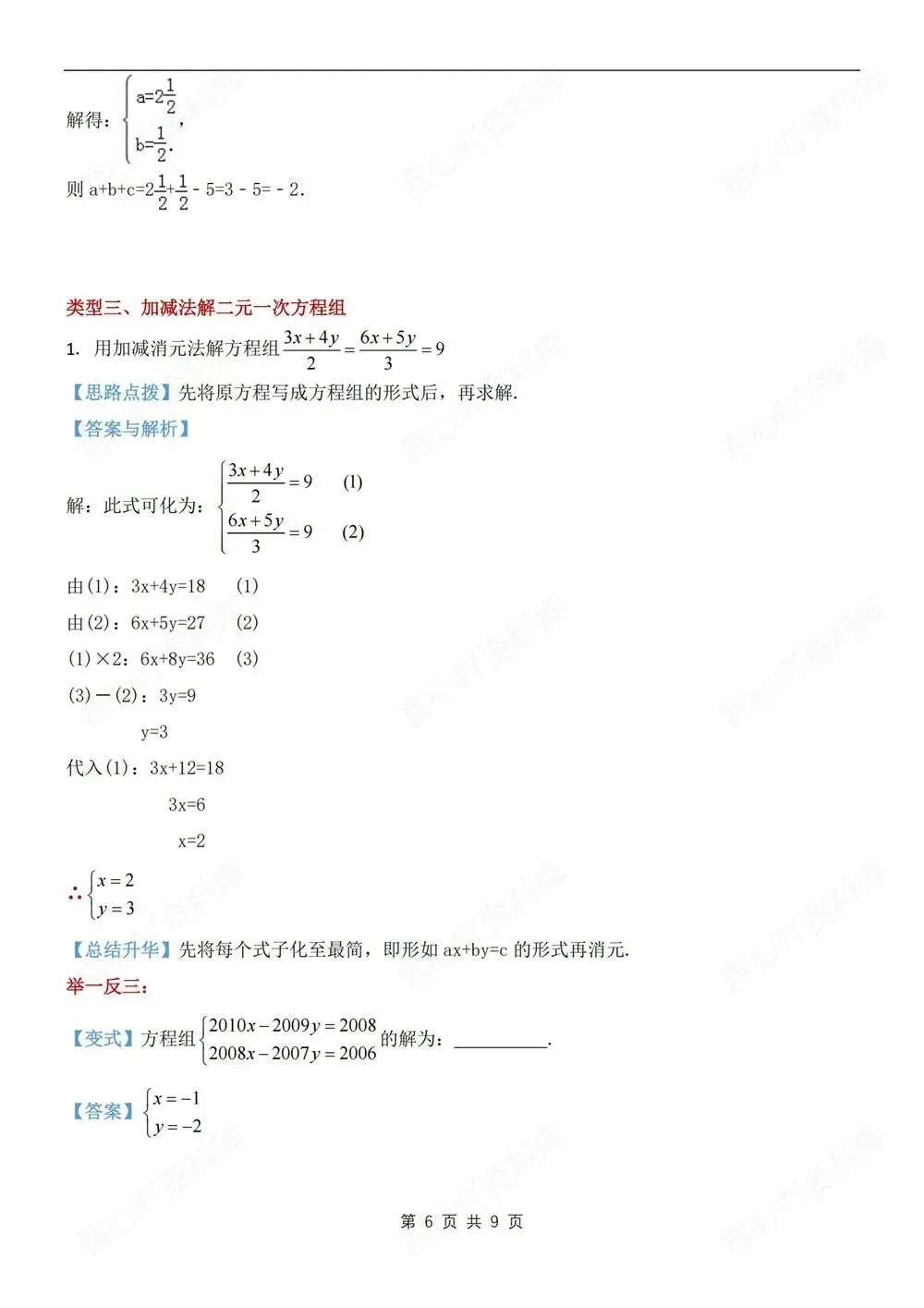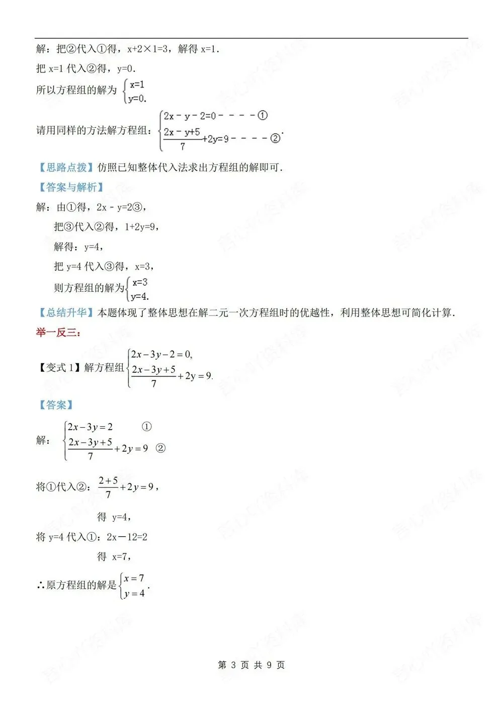 题型讲练,初中数学七年级下(全)新教材初一下册,二元一次方程组解法,CSXH260236,