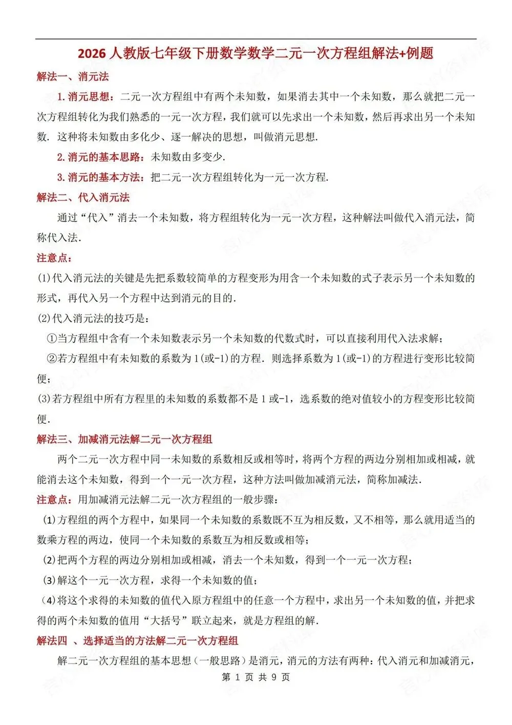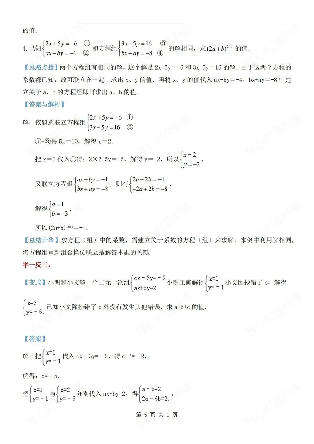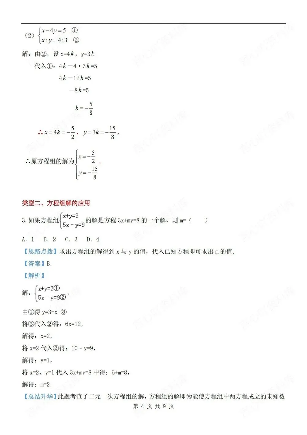 题型讲练,初中数学七年级下(全)新教材初一下册,二元一次方程组解法,CSXH260236,