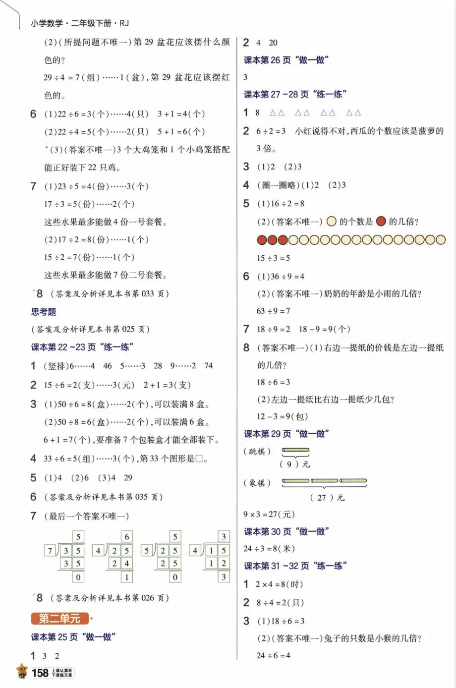 2026春季新版教材小学二年级下册数学课后习题参考答案(人教版)电子版已更新(彩色高清PDF,可打印)