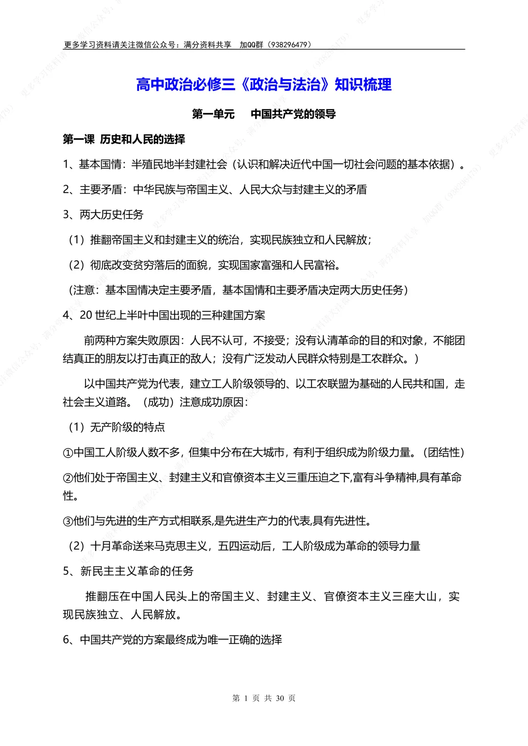 11.统编版高中政治必修三《政治与法治》知识点梳理(pdf分享)