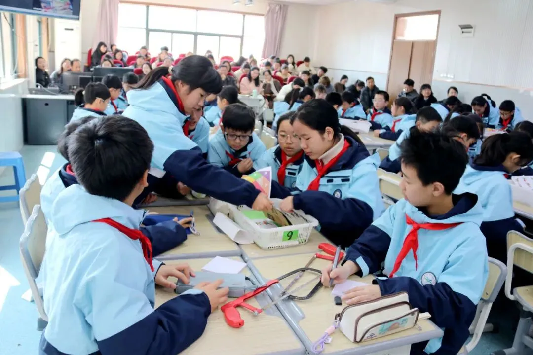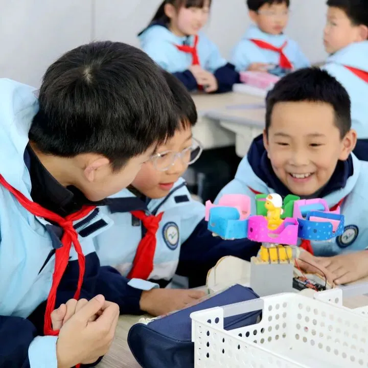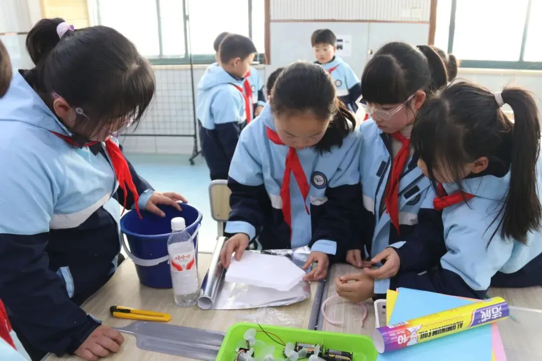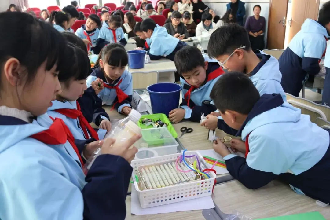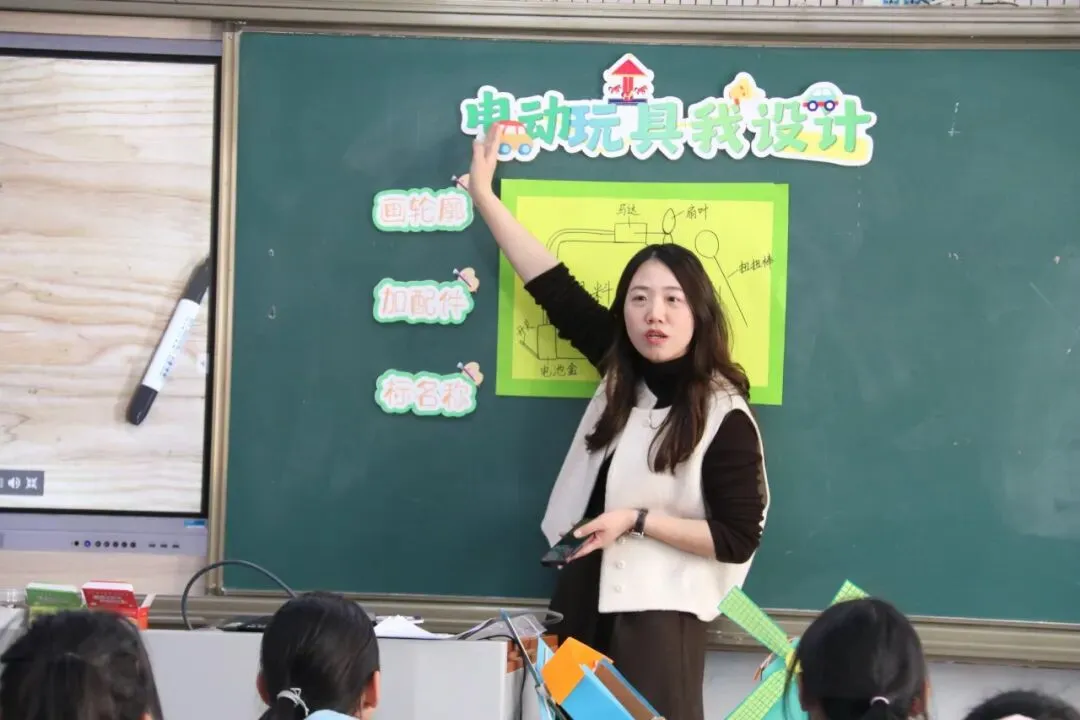 椒江区心海育才小学张利沙老师以多样电动玩具为切入点,成功吸引了孩子们的注意力,随后引导学生结合自带材料,深入认识电动玩具的核心部件——马达,了解其工作原理。在张老师的指导下,各小组分工合作,精心绘制电动玩具设计图,通过交流点评不断优化方案,在动手动脑中培养了科学探究能力与创新设计思维,为后续的制作课程奠定了坚实基础。