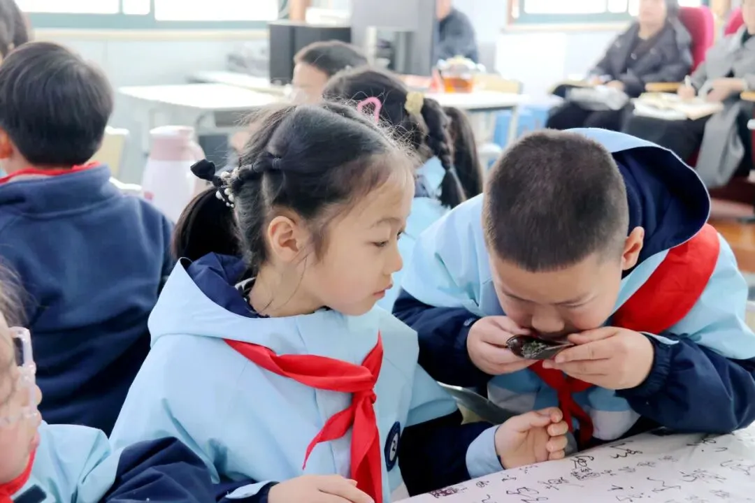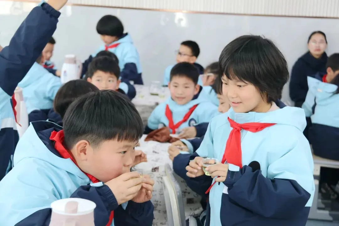 椒江区中山小学杨司校区杨丽老师引导学生认识台州羊岩山绿茶,讲解茶叶的相关知识,随后一步步示范规范的泡茶步骤,让学生亲手体验冲泡、品尝的过程,在茶香中感受劳动的乐趣。之后,学生们动手添加辅料制作姜茶,在实践中不仅学会了泡茶技能,更掌握了基本的待客礼仪,同时也传承了中华优秀传统文化。