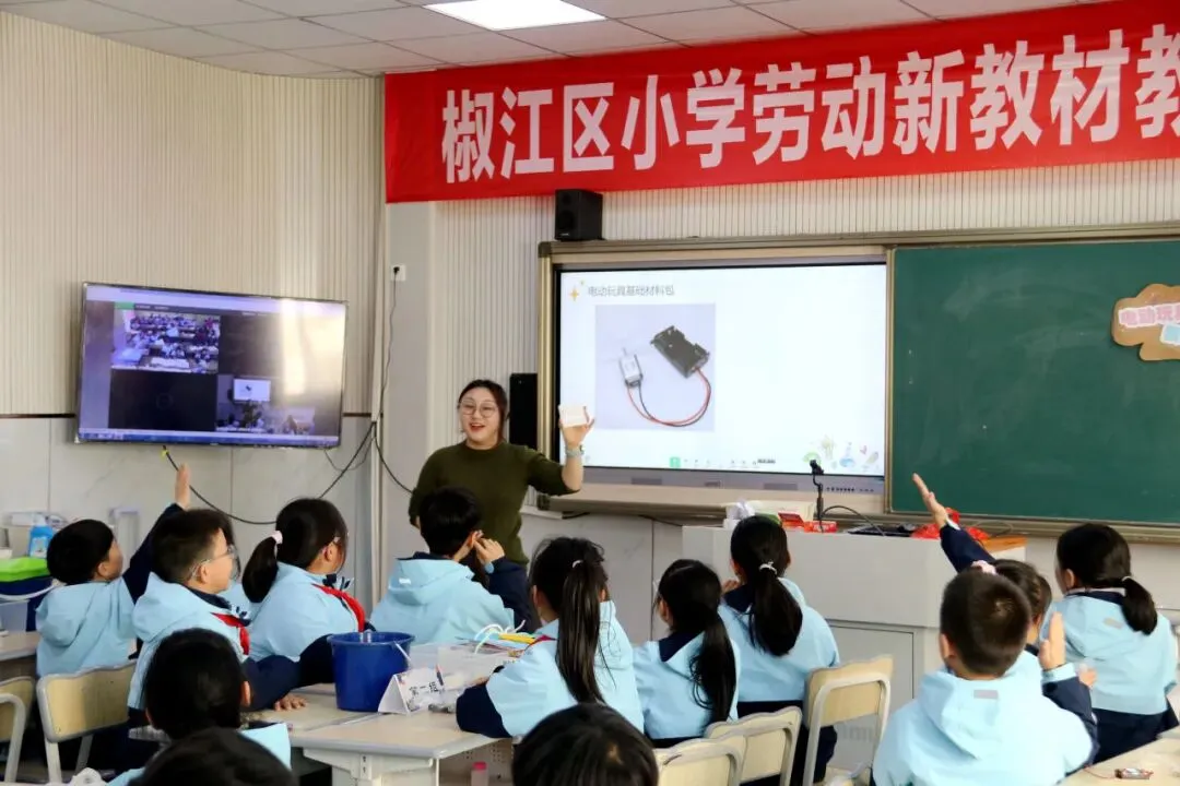 椒江区文昌第二学校陶奕如老师以“制作电动玩具”为主题,引导学生从认识开关、学习电路连接入手,动手实践完成作品。课堂设置了制作、展示、点评、迭代创新等环节,鼓励学生在“设计-制作-调试”中运用工程思维解决问题,培养规范操作、安全劳动的习惯。通过小组合作与互评,学生不仅掌握了基本技能,更在改进优化中体悟精益求精的工匠精神,将科学原理与劳动创造有机结合,激发创新意识。