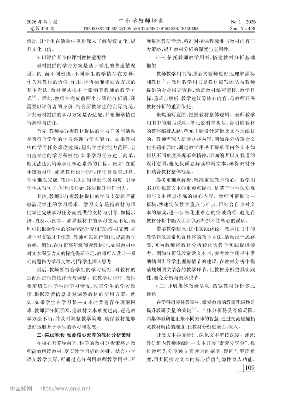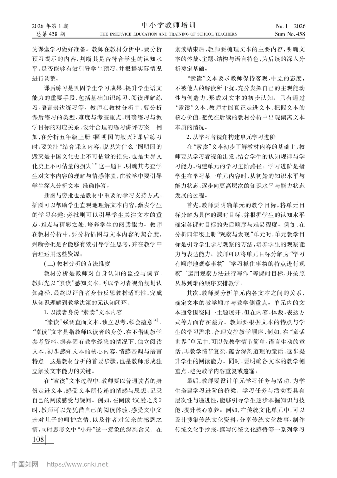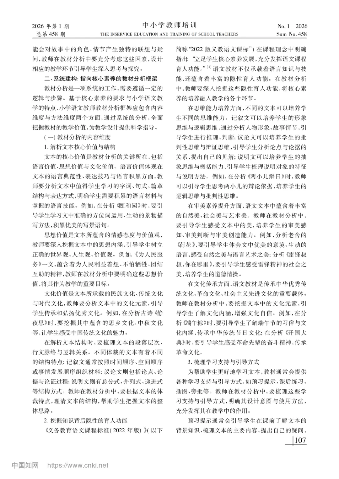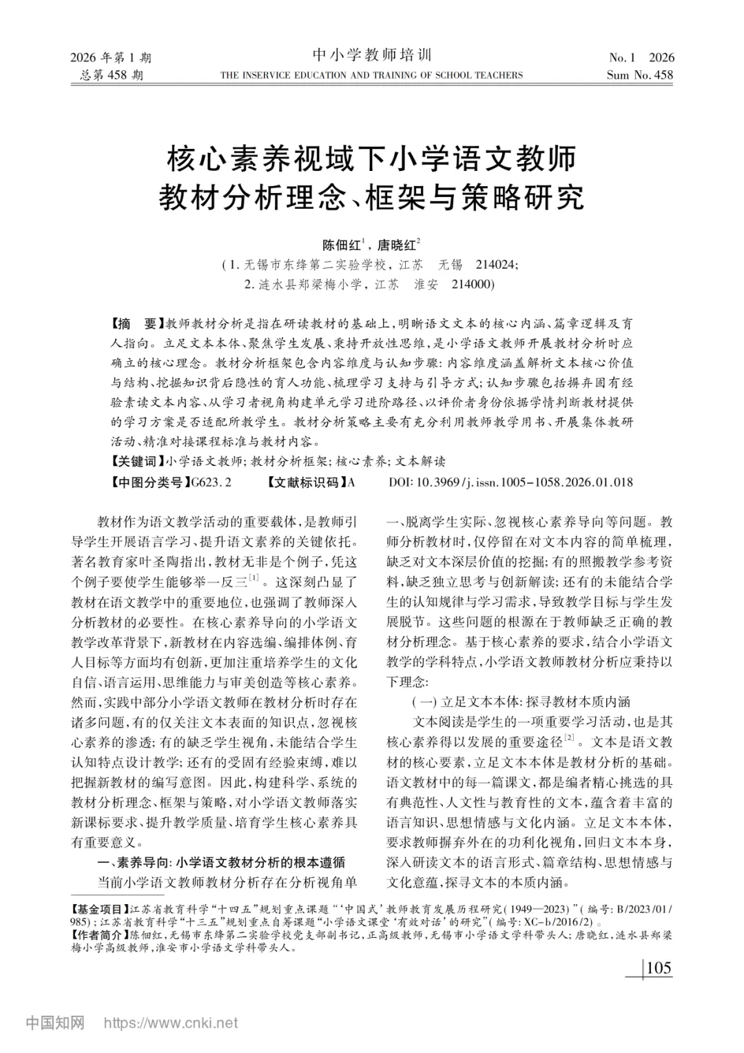 关键词:小学语文教师;教材分析框架;核心素养;文本解读