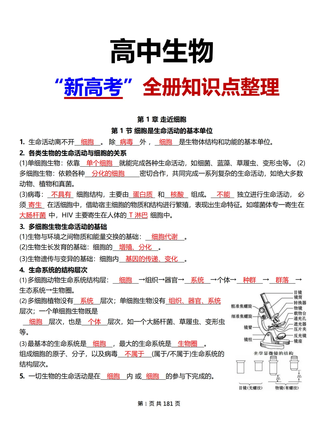 为此今天把已经整理好的【2026高中生物(新教材必修+选修)知识点梳理总结笔记】分享给大家,高中三年有这一份就够了!