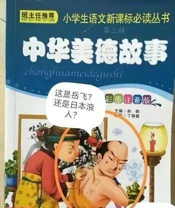 还有这个语文必读丛书封面,画着大块头光膀子刺字的男人,标着“中华美德故事”,仔细一瞅,那形象像极了日本浪人,要不是后背刻着四个大字“精忠报国”,还以为走错片场,书上说是岳飞,画风一点不像,小时候咱印象里的岳飞都是铁甲披风、正脸刚毅,这回被整成了陌生样儿,忍不住想问,到底是画师没学好还是没把岳飞当回事,反正看着别扭,小孩子还真分不出来哪出哪进。