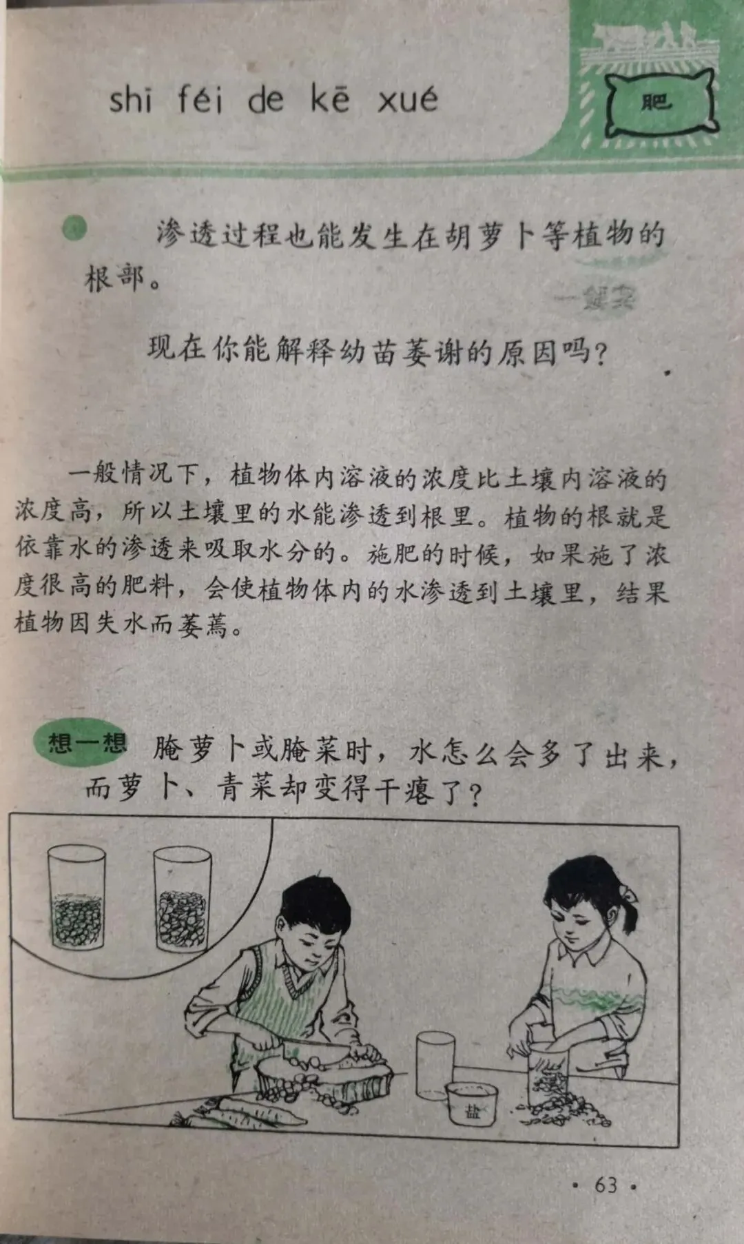 1965年版的小学语文课本第二册课文:《锯、锄、锤子比本领》