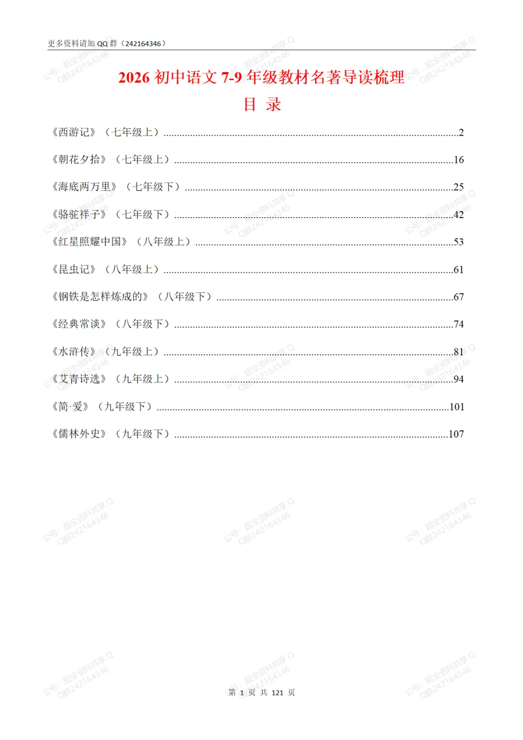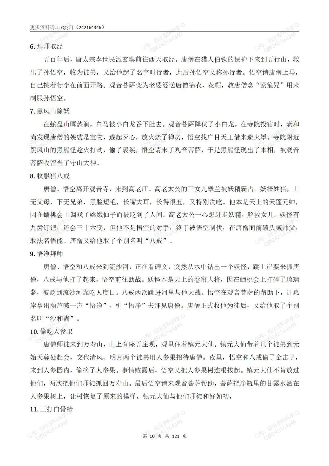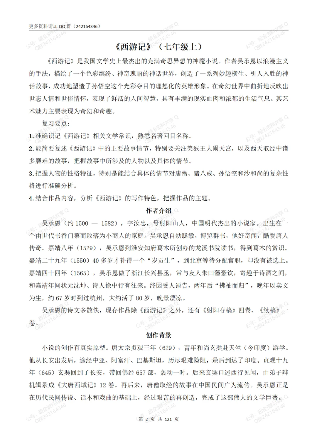 364.初中语文七上《西游记》1-100回考点总结(pdf分享)