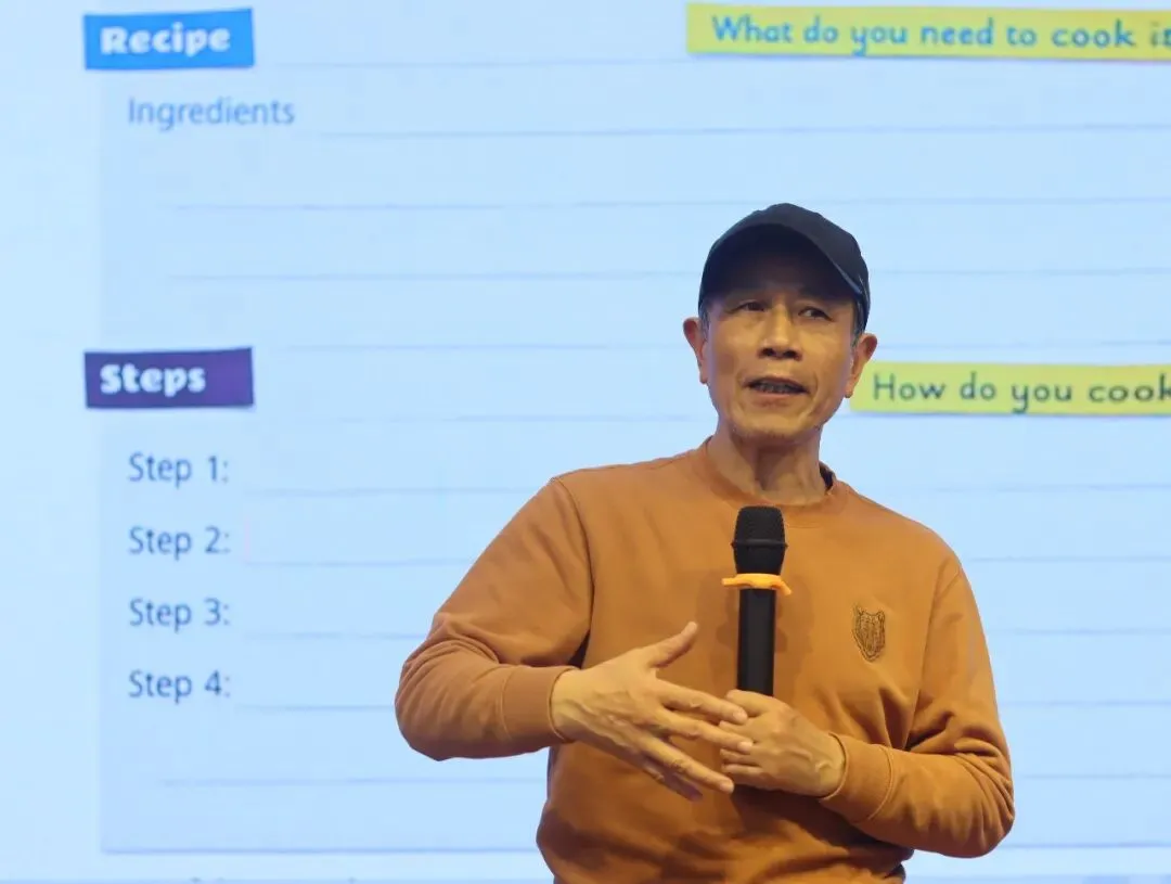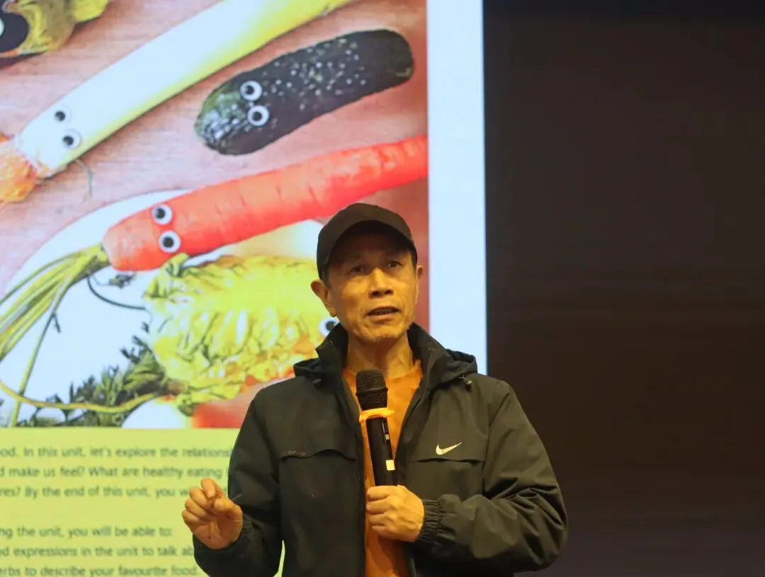 课例展示后,教育部义务教育英语课程标准审定组专家、新版教材副主编夏谷鸣教授作专题讲座。他明确单元语篇分类及各板块教学价值,强调教学目标需坚持 “三维一体”,并针对 Understanding ideas 等板块给出实操指导,提出要兼顾学情与需求,通过分层设计实现学生阅读能力阶梯式提升。而后,夏教授从理论高度肯定教师实践探索,围绕 “基于学情设计单元教学目标、优化教学路径” 给出指导性建议,并现场解答教师教学困惑。
