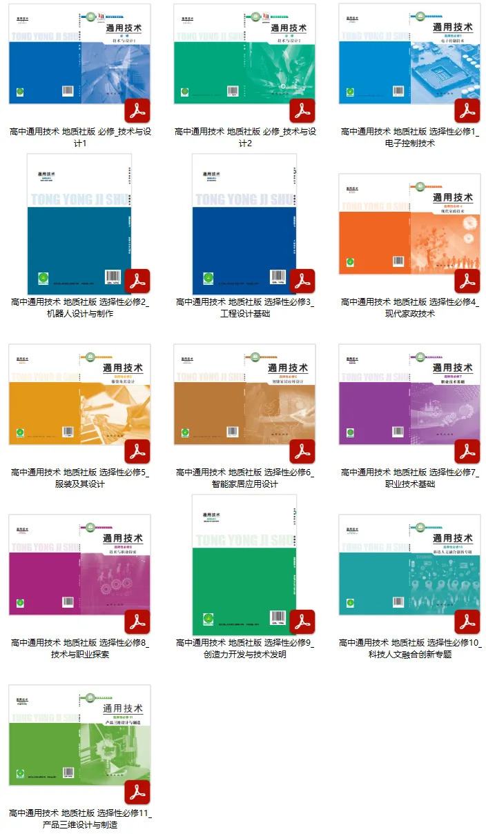 高中通用技术地质社版教材包括必修2册,选择性必修11册,共13册。