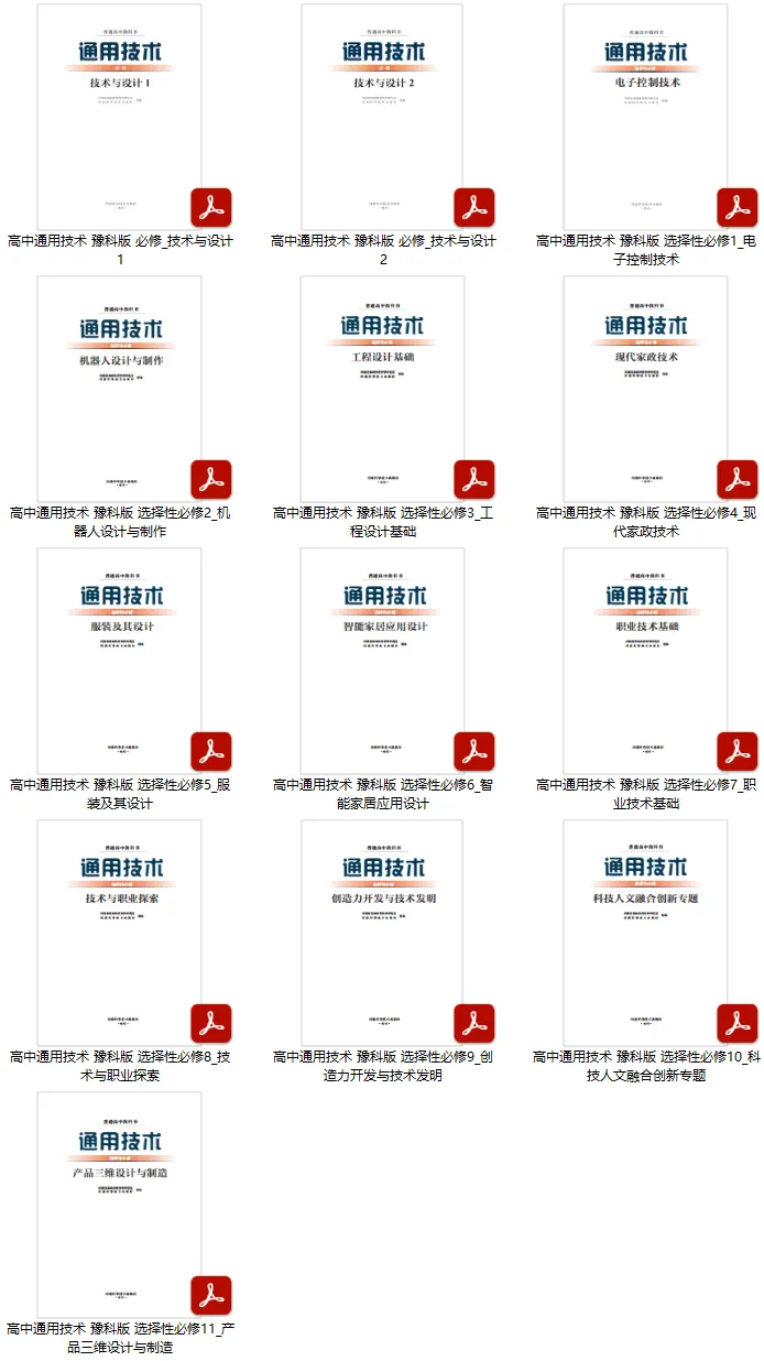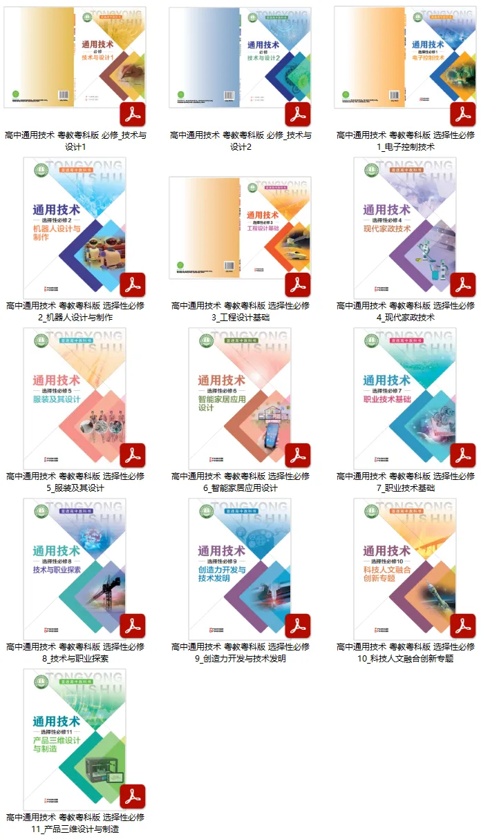 高中通用技术教材包括人教版、地质社版、苏教版、豫科版、粤教粤科版共5个版本。pdf可编辑无水印电子课本下载方式见文末。