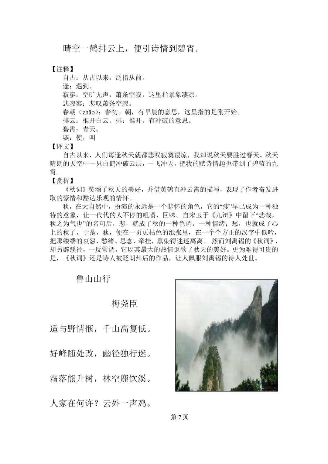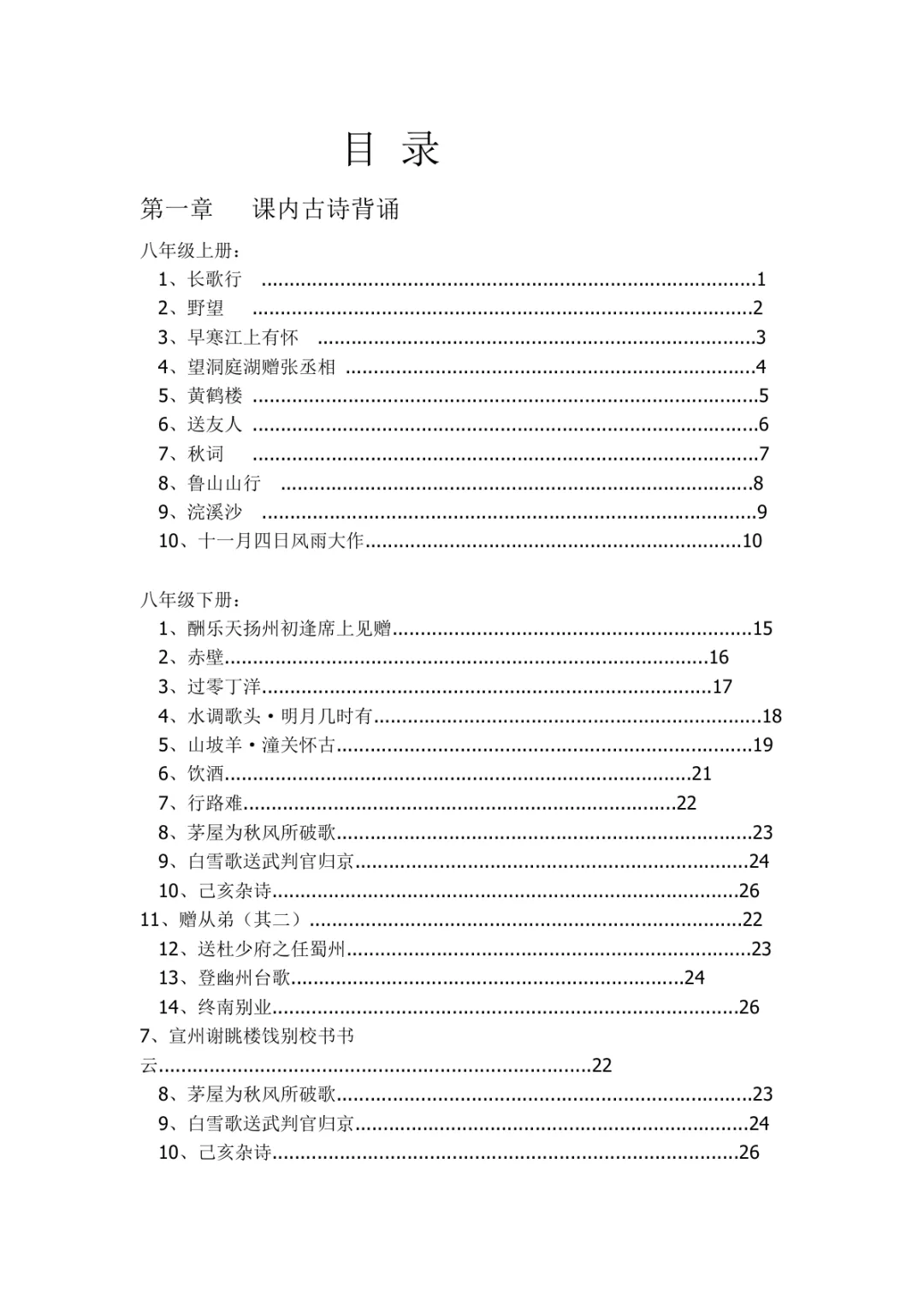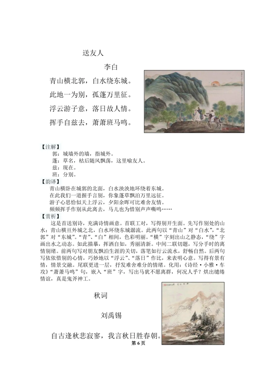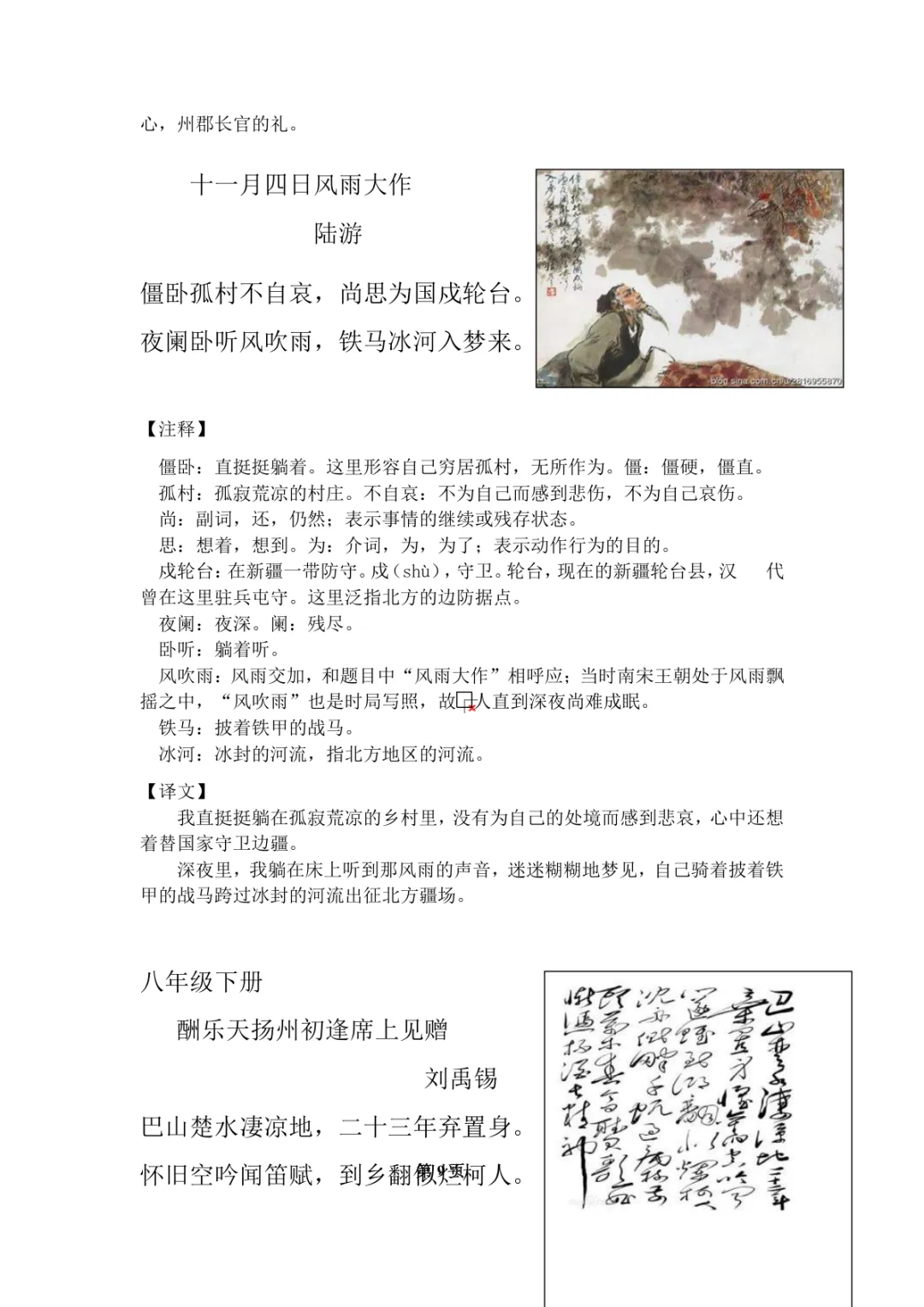 初中语文教材古诗主题分类表