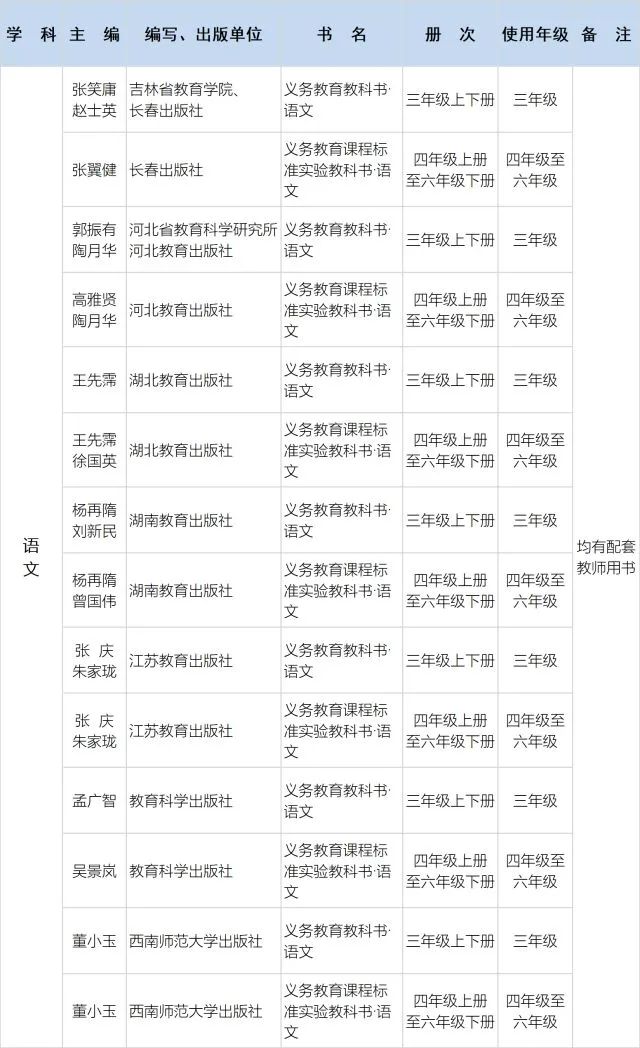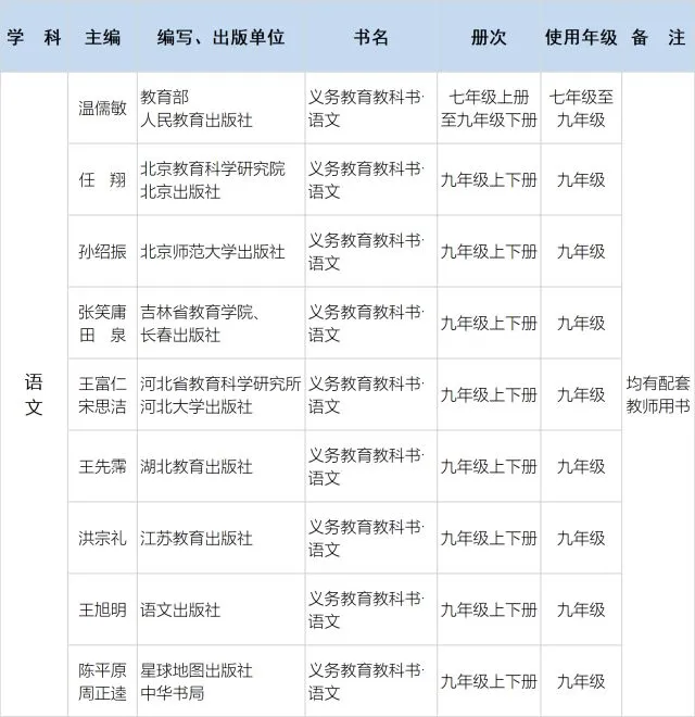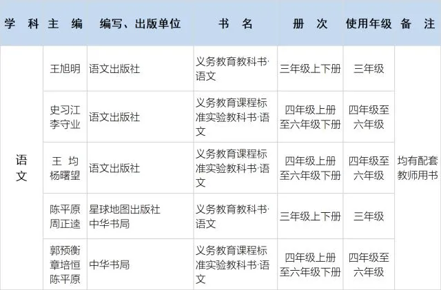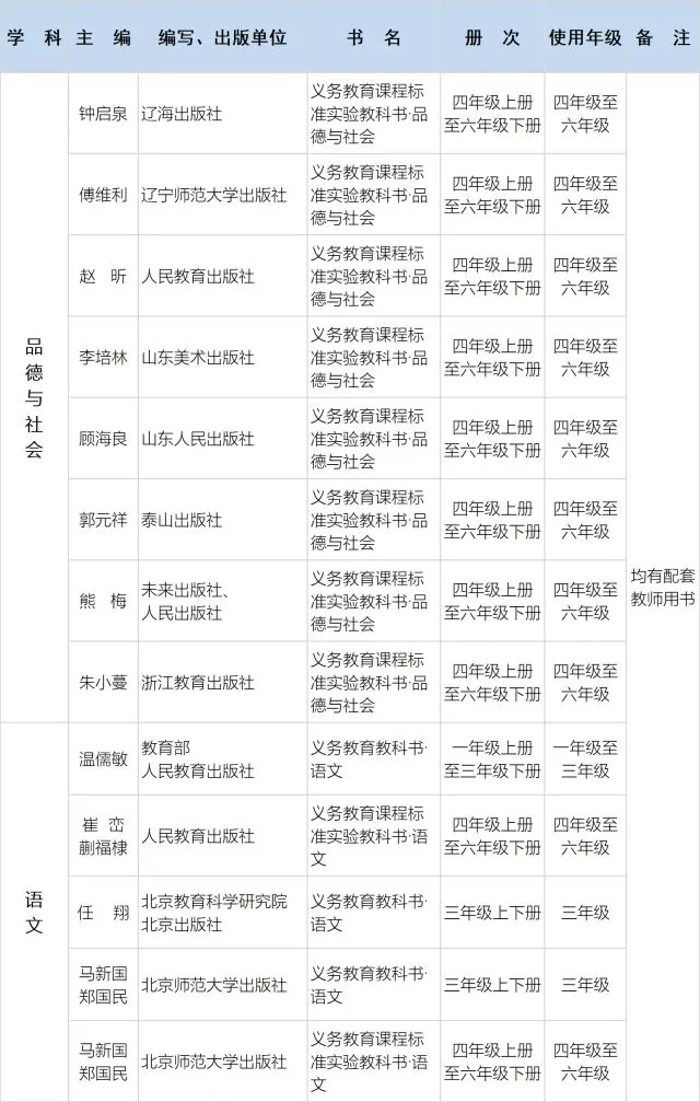 1.义务教育国家课程相关学科(除道德与法治、语文、历史和小学科学之外)仍使用《2016年义务教育教学用书目录》(教基二厅函〔2016〕12号)公布的教材。
