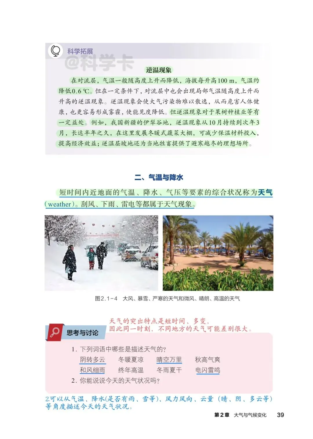 初中科学八下课本精读丨天气与气候(一)