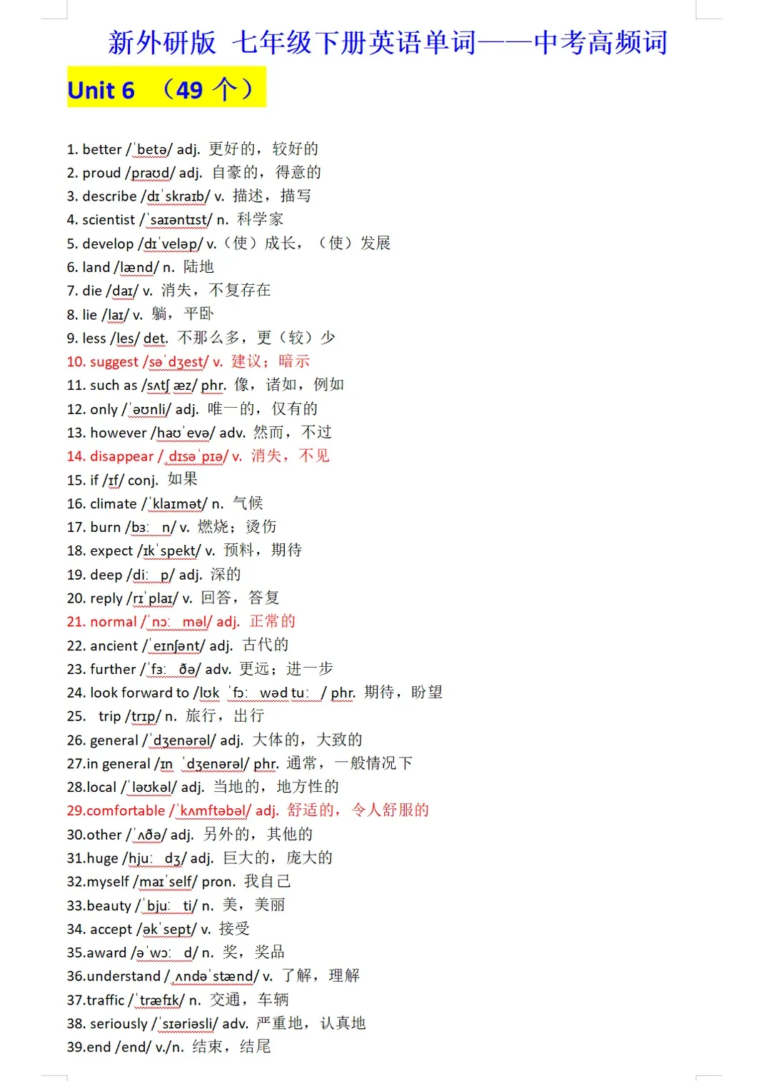 人教版英语初中新目标七年级下册电子课本单词表+单词解析笔记(免费可打印)