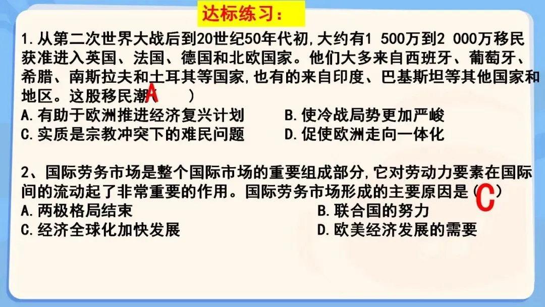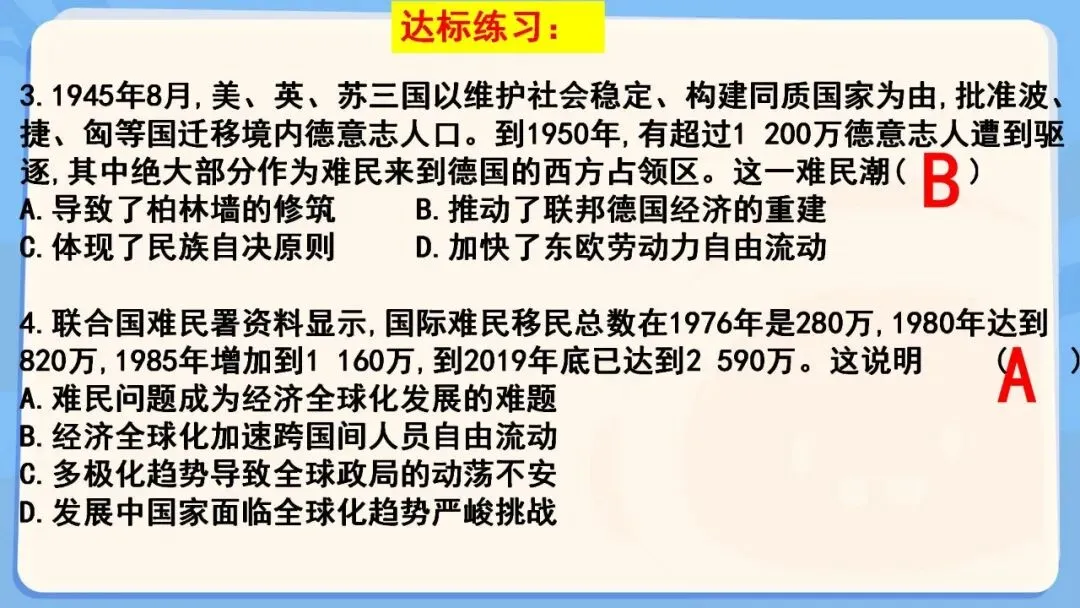 【新教材】必修下历史第18课《冷战与国际格局的演变》提高练习+解析+答案
