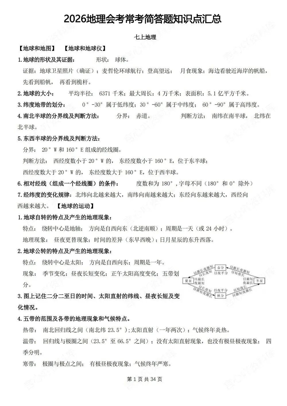 知识归纳,初中地理新版中考中考专项专题复习,四册教材知识归纳复习,CDLH260269,