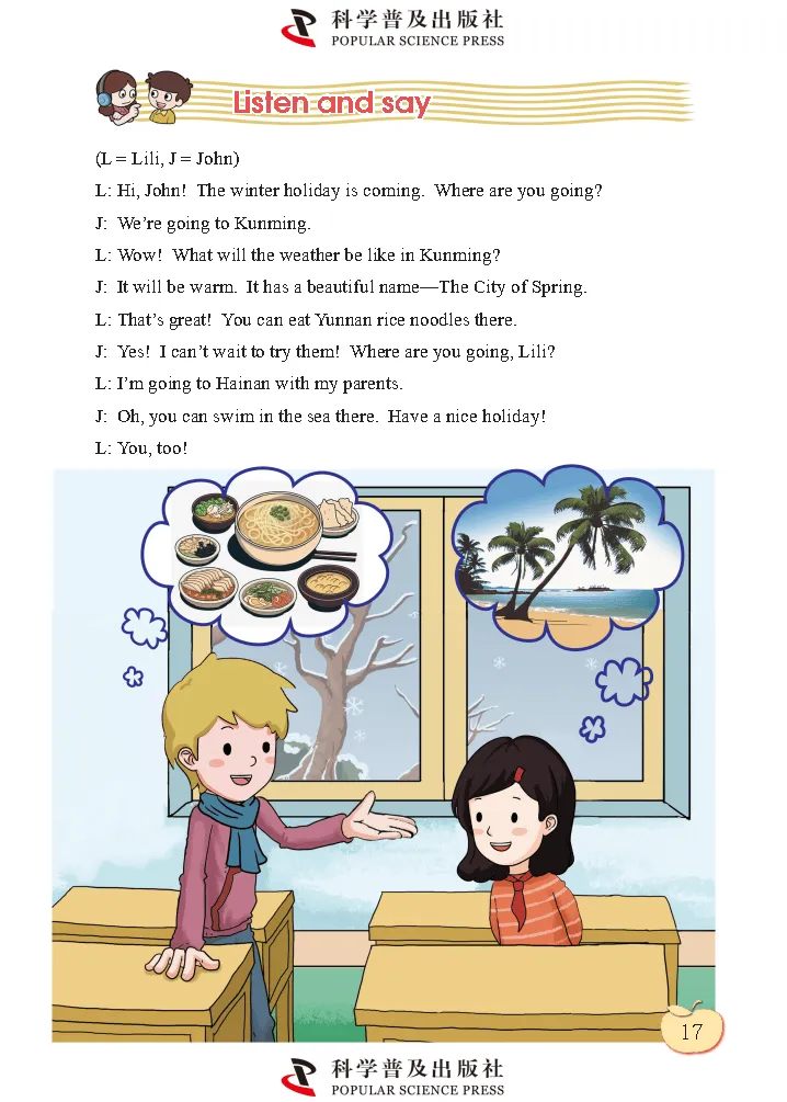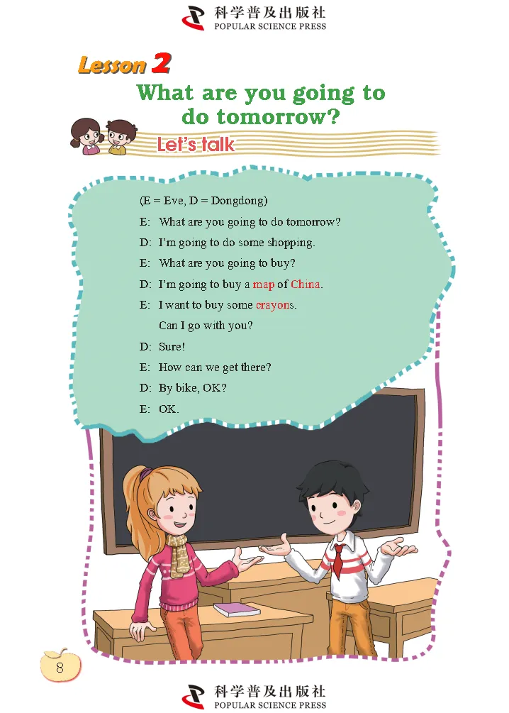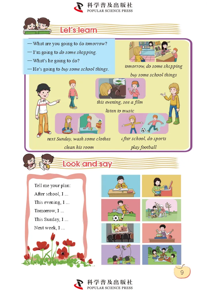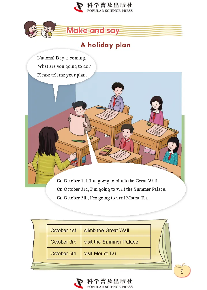 ,然后发送 电子课本 2026秋科普版六年级英语上册期中复习核心,考查范围覆盖全册前5个单元,紧扣生日计划、日常安排、天气日期、方位购物、世界名城五大核心主题,是六年级英语收官进阶、衔接小升初的关键复盘阶段,贴合高年级学生认知特点,适配期中全面复盘、错题巩固、基础夯实,吃透这些知识点,既能帮孩子轻松应对期中测试,又能强化语法综合运用和书面表达能力,为后半学期复习和小升初备考筑牢根基。结合教材核心考点与教学重点,本次期中知识点重点攻克四大核心模块,补充高频易错点提醒,帮孩子避坑、高效提分:一是核心词汇,按四会、三会分类,聚焦期中及小升初高频词汇,重点掌握五大类别,生日与活动类包括birthday、party、invite、sing、dance、eat noodles、make a cake,日常安排与天气类包括plan、weekend、sunny、rainy、windy、cloudy、cold、hot、tomorrow、next week,方位与购物类包括in front of、behind、beside、buy、sell、cheap、expensive、shop,世界名城与相关类包括Beijing、London、Tokyo、Paris、Sydney、capital、attraction,情感与其他类包括happy、excited、worried、kind、strict,拓展invite some friends、visit the Great Wall、see a film、do sports等实用短语,特别提醒易错点:invite拼写注意结尾为ite,切勿误写为inviete;birthday不可漏写中间的r;sunny、rainy等天气类形容词均以y结尾,变名词需去y变i加ness;expensive与cheap词义相反,capital表示首都时首字母需大写,搭配情景联想+分类记忆法,结合日常场景和话题联动记忆,比死记硬背更高效,贴合六年级孩子的记忆特点和小升初备考节奏。二是核心句型,全是期中必考的实用句式,围绕生日计划、日常安排、天气询问、方位描述、名城介绍展开,重点掌握五大场景句型:生日与邀请What are you going to do for your birthday? 你生日打算做什么?I’m going to have a birthday party. 我打算举办一个生日派对。Would you like to come? 你愿意来吗?Sure, I’d love to. 当然,我很乐意。日常与天气What are you going to do this weekend? 这个周末你打算做什么?I’m going to see a film. 我打算去看电影。What will the weather be like tomorrow? 明天天气怎么样?It will be sunny. 明天会是晴天。方位与购物Where is the shop? 商店在哪里?It’s beside the school. 它在学校旁边。How much is this book? 这本书多少钱?It’s ten yuan. 十元。名城介绍Where is Beijing? It’s in the north of China. 北京在哪里?它在中国的北方。What is London famous for? It’s famous for Big Ben. 伦敦以什么闻名?它以大本钟闻名。每个句型都搭配简单易懂的例句,贴合真实生活场景,孩子学完就能用,也是期中情景对话、句型转换、书面表达的必考内容。三是核心语法,重点巩固三大核心语法,贴合小升初考点,一般将来时的综合运用,熟练掌握be going to+动词原形和will+动词原形两种形式,区分两者用法差异,be going to侧重计划打算,will侧重客观将要发生,牢记相关时间标志词;一般现在时的复现巩固,重点掌握第三人称单数作主语时动词的变化规则,以及频率副词often、usually、sometimes的用法和位置;介词in、on、at的用法辨析,in用于大地点、季节、月份前,on用于星期、具体日期前,at用于小地点、具体时间点前,补充名词复数变化规则和固定短语搭配,助力听力与读写提升,提醒核心易错点:be going to和will后均接动词原形,不可接ing形式;第三人称单数作主语时,动词不可用原形;some用于肯定句,any用于疑问句和否定句,邀请句型中some可不变any;方位介词beside与behind、in front of不可混淆,描述名城位置时in the+方位+of+国家的结构不可出错。四是单元备考补充,本单元常考题型为单词翻译、单项选择、句型转换、情景对话、阅读理解和书面表达,贴心给出小升初适配答题技巧,单词题结合主题分类记忆,重点牢记易错拼写和固定短语;句型转换题重点掌握一般将来时的句式变化、第三人称单数句式转换;书面表达可套用简单模板,围绕生日计划、周末安排、名城介绍等高频主题展开,不少于50词,注意句式多样和语法正确,整体难度贴合六年级进阶节奏,兼顾听说读写,侧重综合语言运用能力培养,帮孩子轻松巩固前半学期知识点,避免基础失分,为小升初备考蓄力。