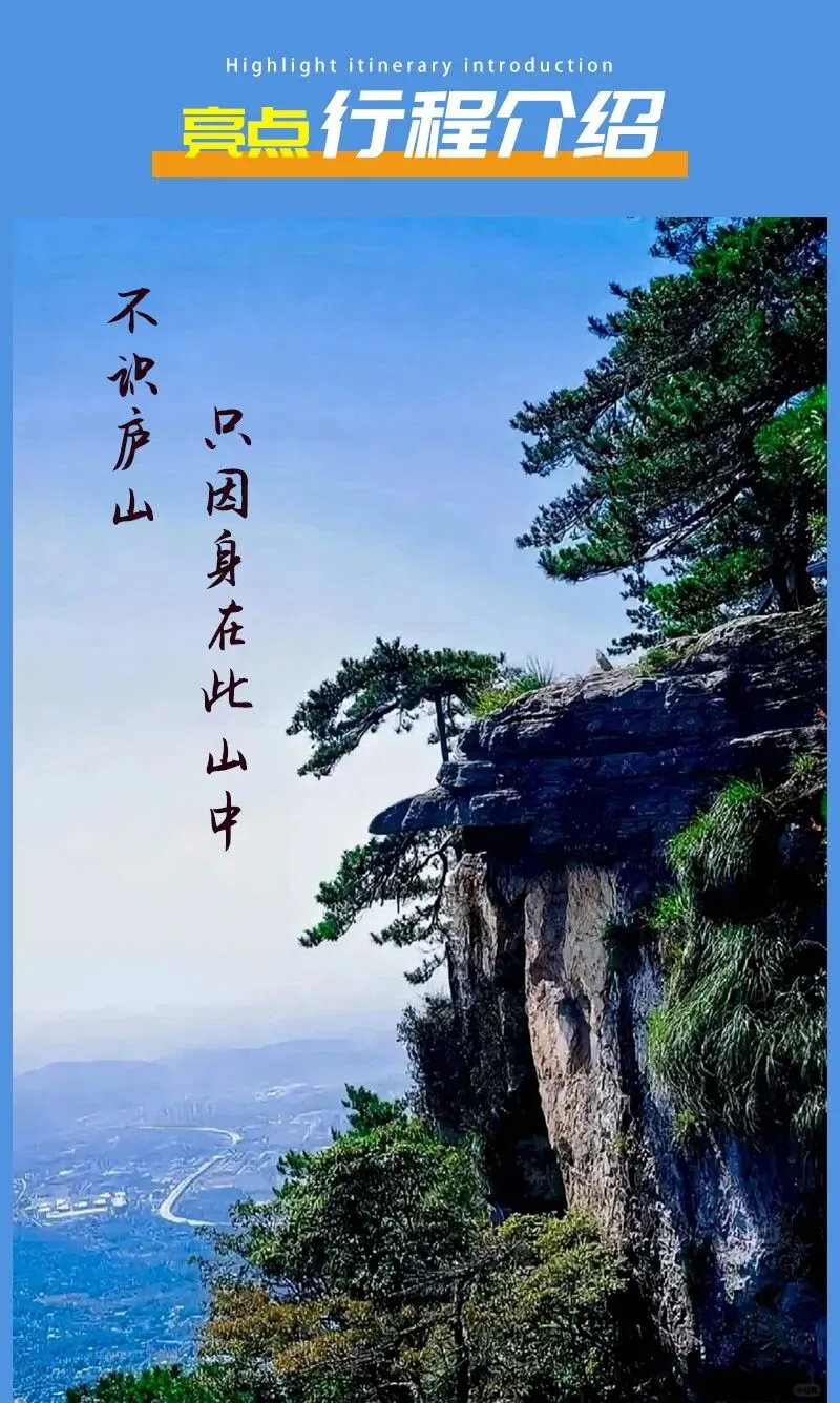 2)门票:庐山门票以景区实际为准,摆渡车或缆车自理。