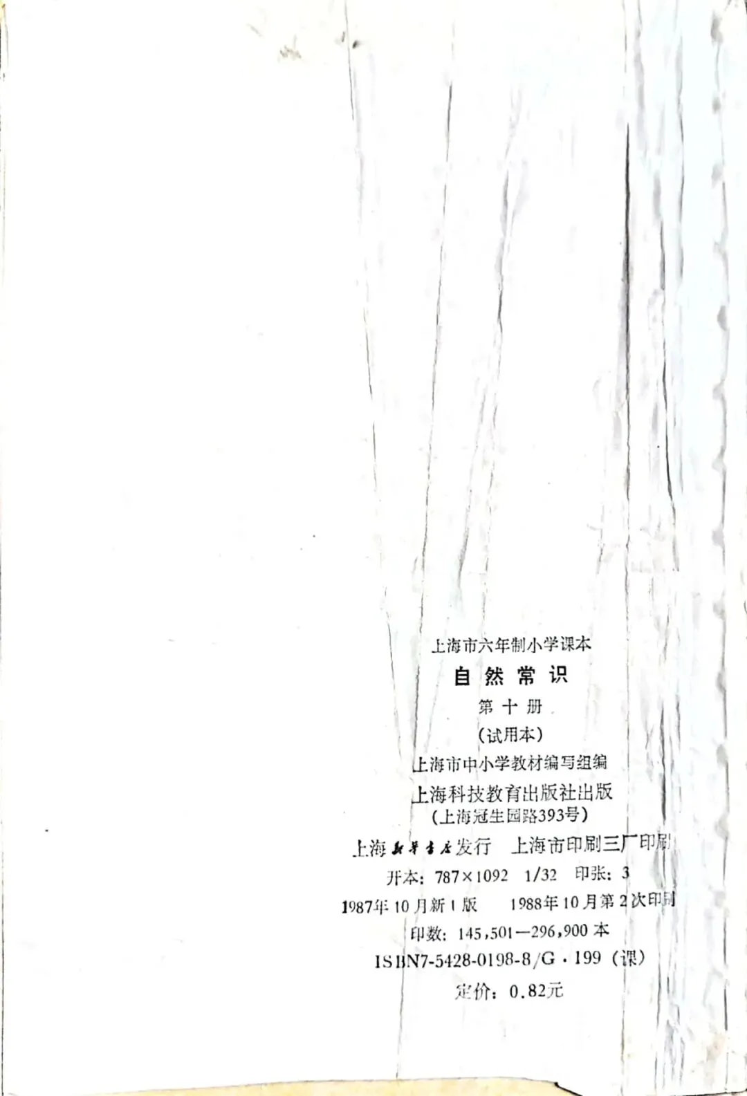 >上海市六年制小学课本(试用本)自然常识·第十册[上海教育出版社·1988年10月新一版二印]
