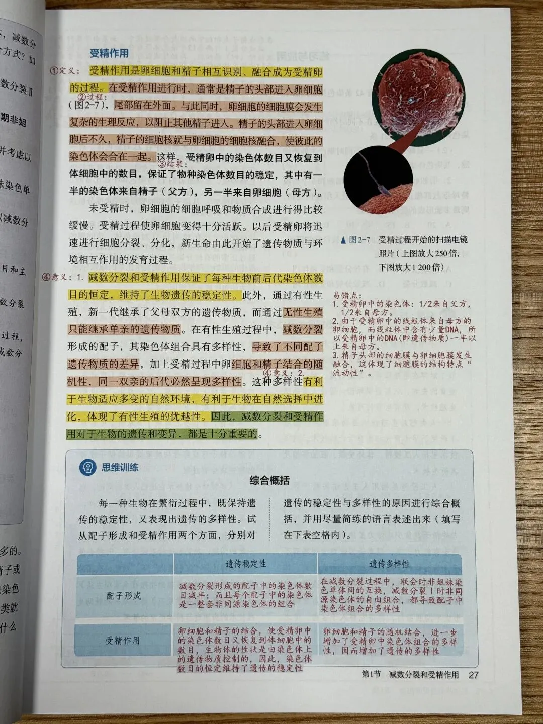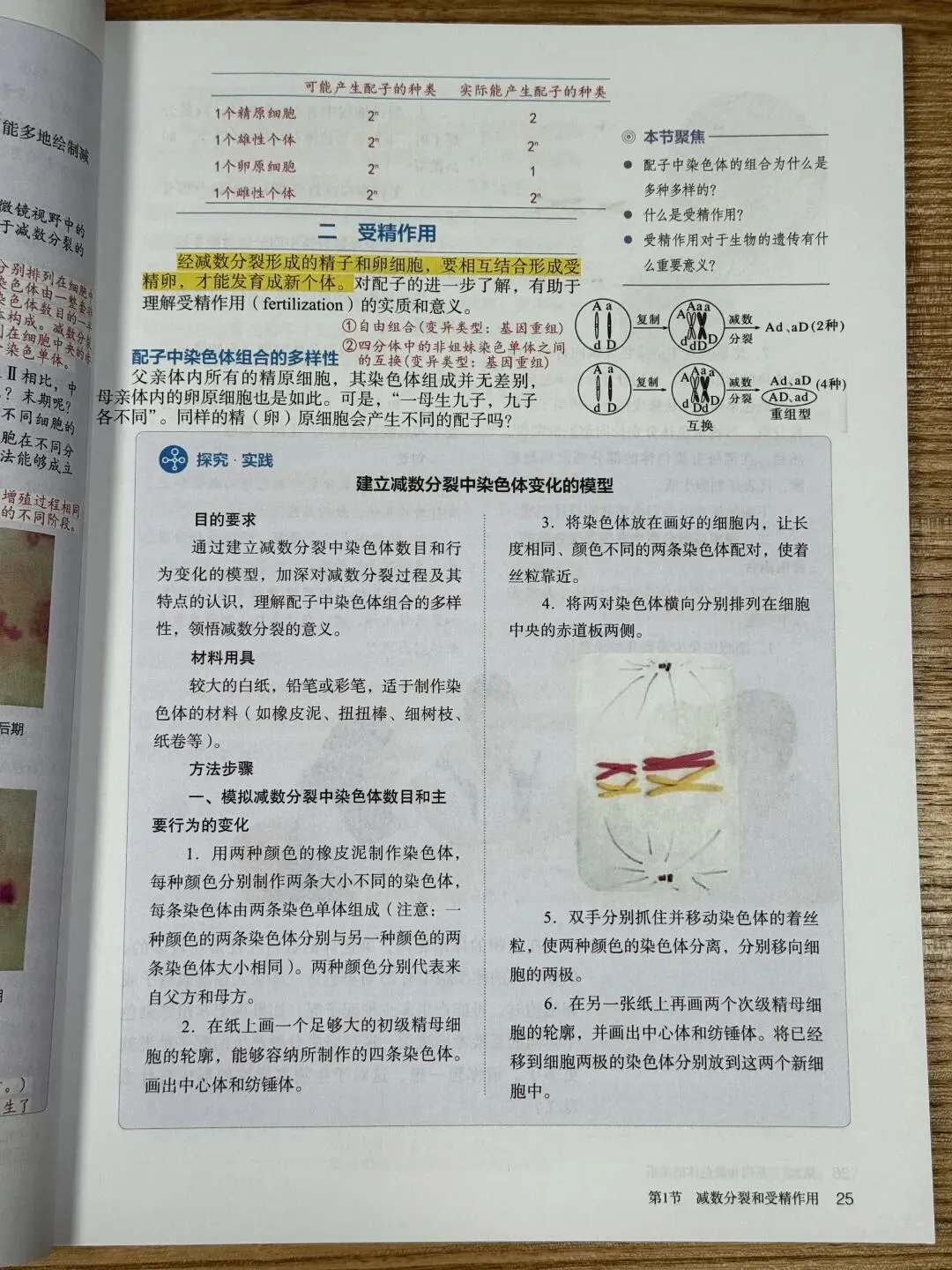 高中生物必修二课本笔记|2.1减数分裂和受精作用