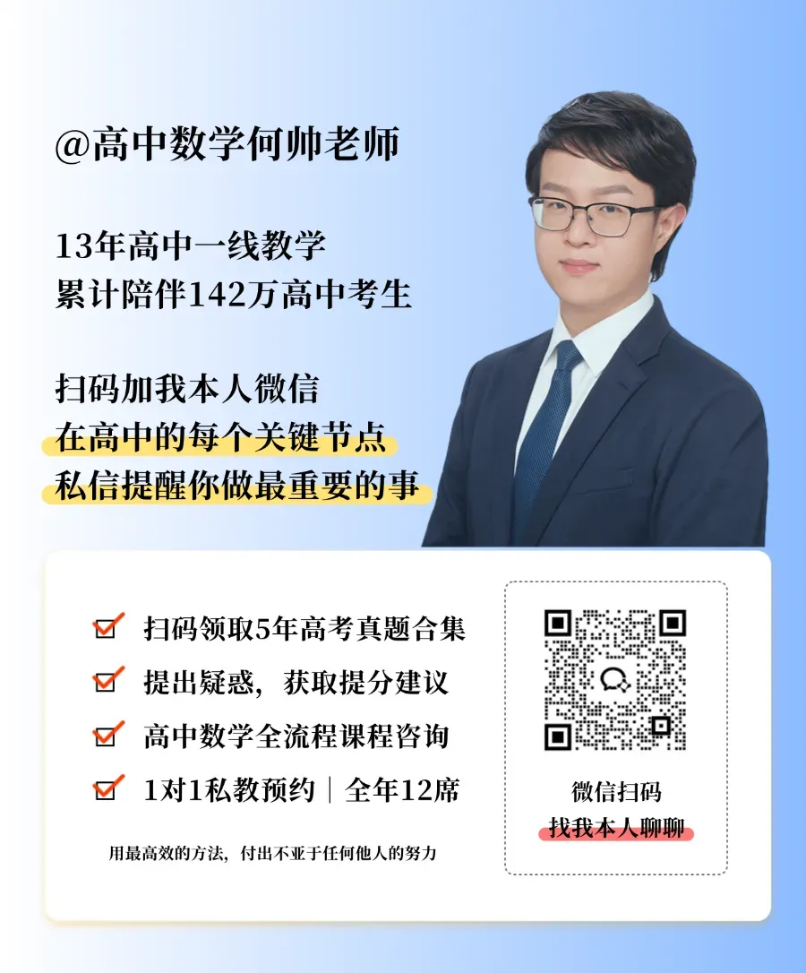 我为你准备了几份重要的数学学习资料,包括:过去5年的高考真题合集、最近2年新高考区模考卷合集(300多套试卷)、2008年至今教育部官方《试题分析》电子版PDF、以及最新人教版教室教学用书的PDF,你可以加我微信直接领取: