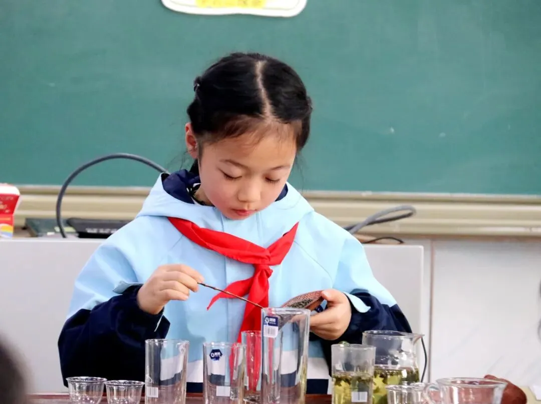 学生们动手添加辅料制作绿茶,在实践中不仅学会了泡茶技能,更掌握了基本的待客礼仪,传承了中华优秀传统文化。