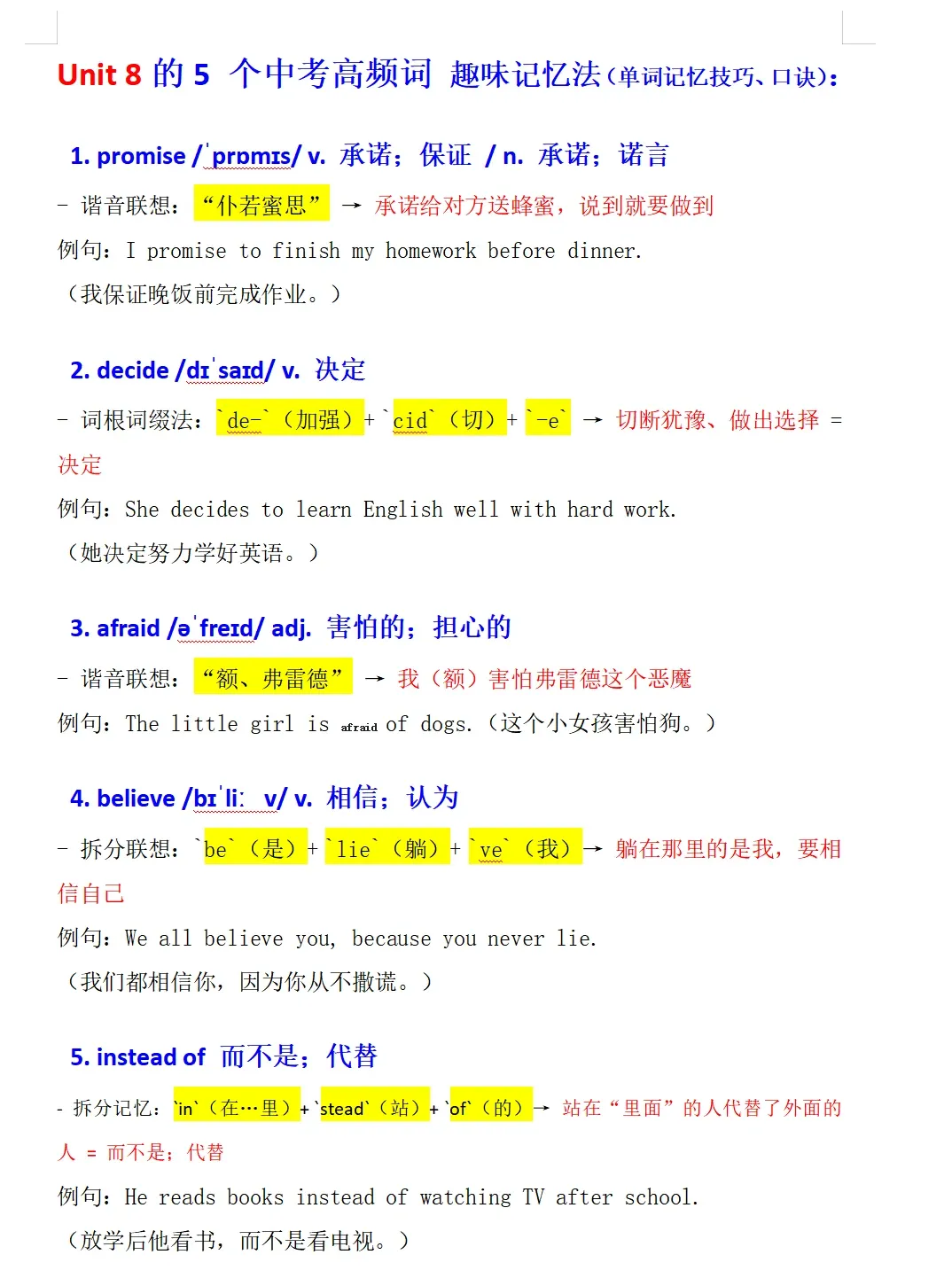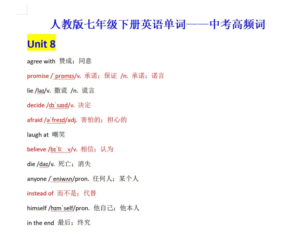 人教版初中新目标七年级下册英语电子课本单词表+单词解析笔记(免费可打印)