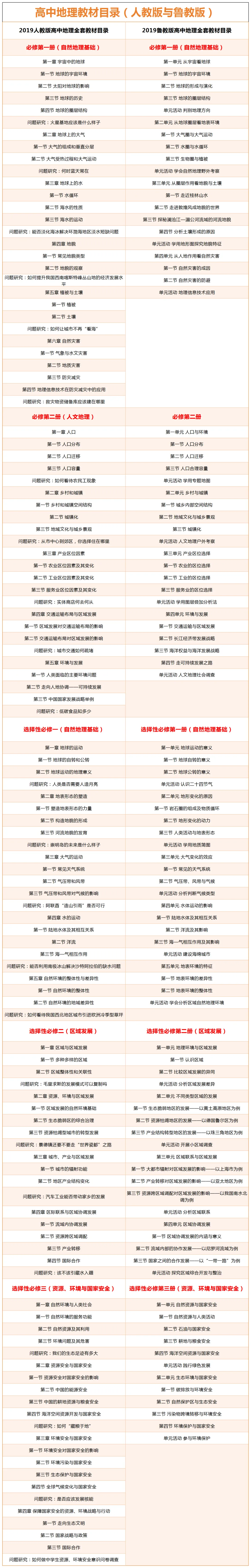 对比高中地理教材人教版与鲁教版目录设置