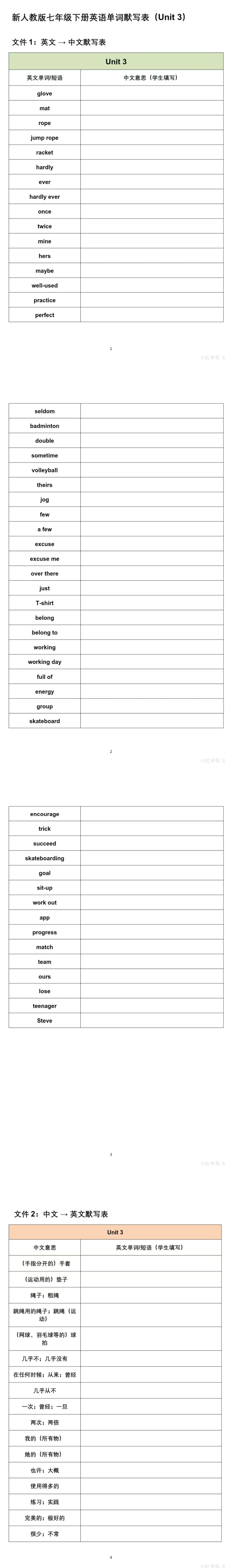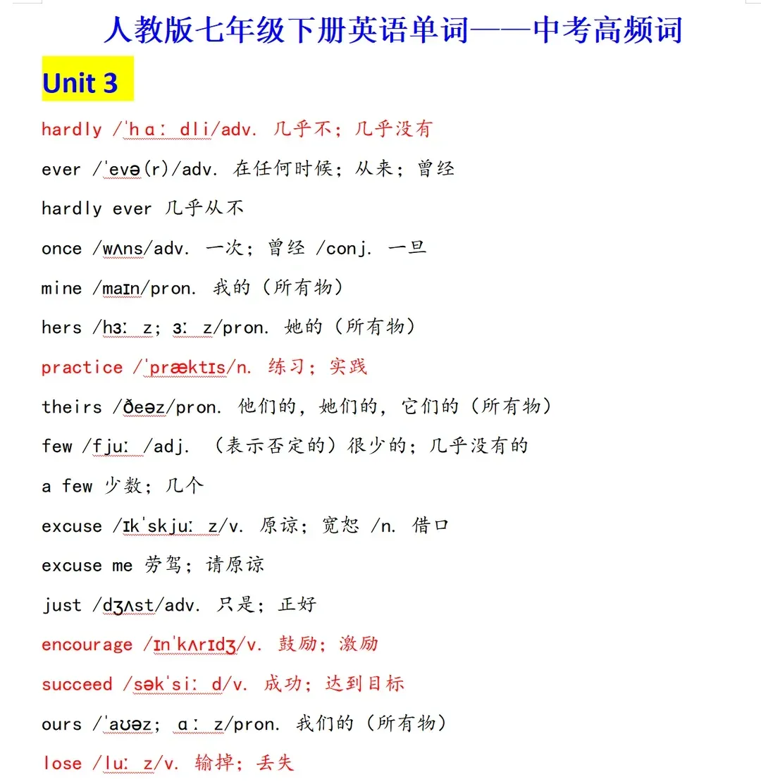 >人教版初中英语七年级下册电子课本同步教材课堂笔记+单词表知识点归纳