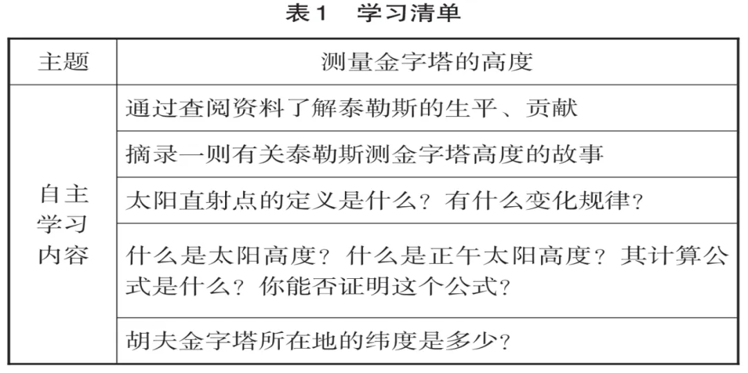 该质疑是对早有史书记载的一个问题的质疑,容易激发学生的兴趣。此外,要很好地解答对泰勒斯的测高问题的质疑,需要用到一些地理知识和相关数学史,这恰好是一个跨学科教学的素材。笔者通过查阅相关资料并与地理教师合作、探讨,与教研组其他教师共同讨论,最后确定本次跨学科学习的主题——测量金字塔的高度。