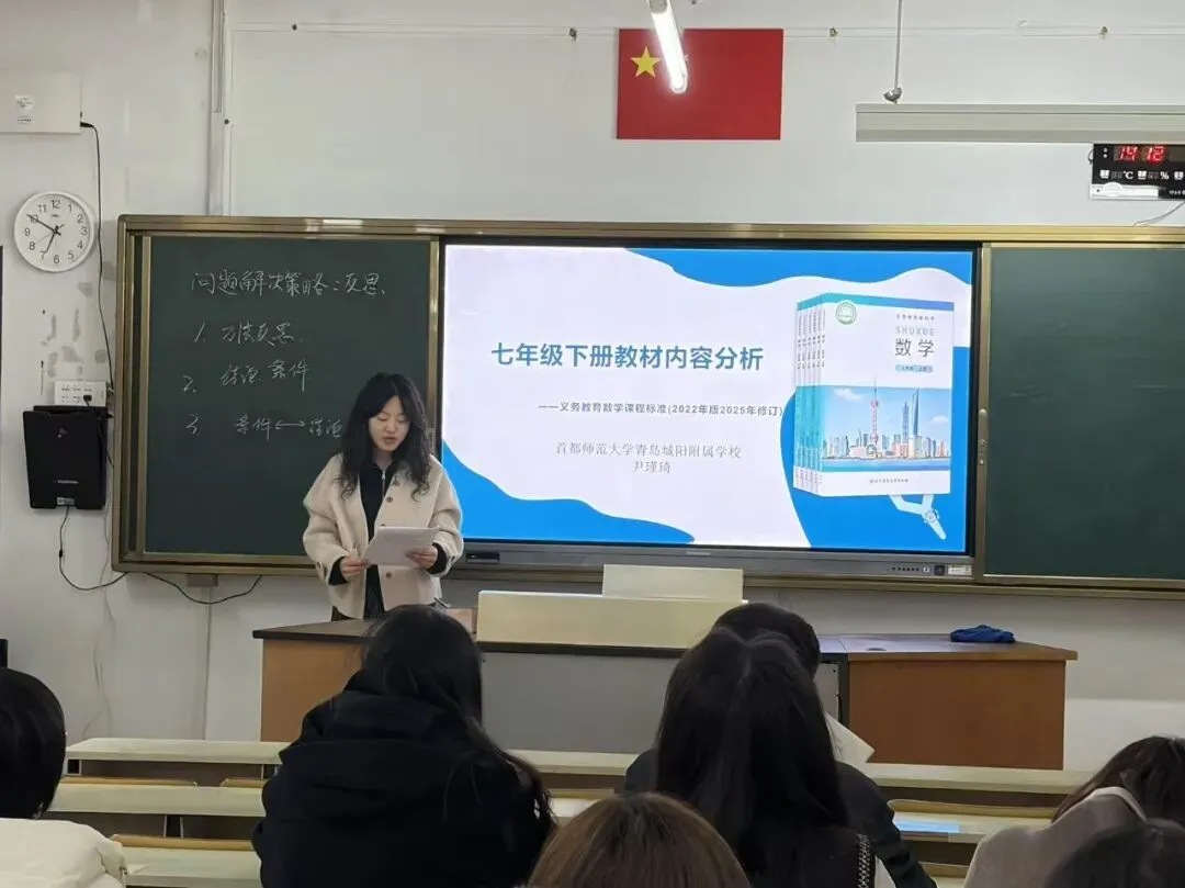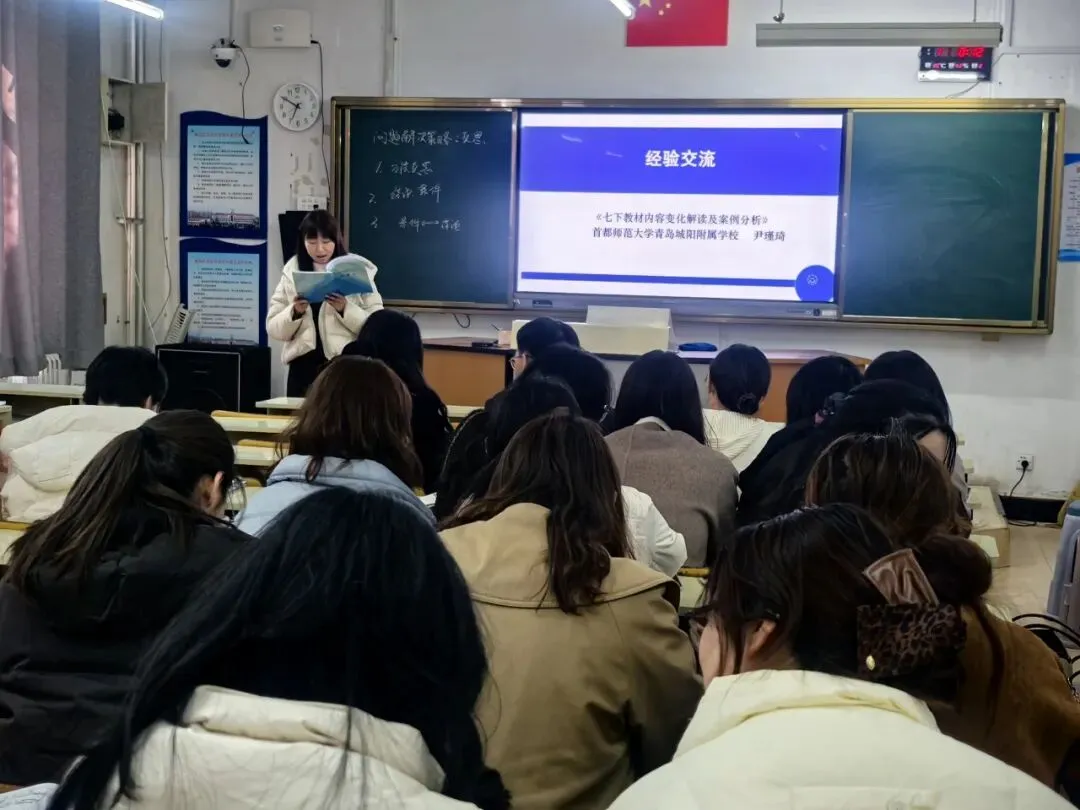4.褒奖佳绩,持续赋能。刘老师肯定了青年教师在各项比赛中的优异表现,并希望全体老师再接再厉,再创佳绩,以新课标新教材为理论基础,历年中考题为方向,加强对大单元结构教学的研究深度,凝聚团队力量,共同推动城阳区数学教学质量稳步提升。