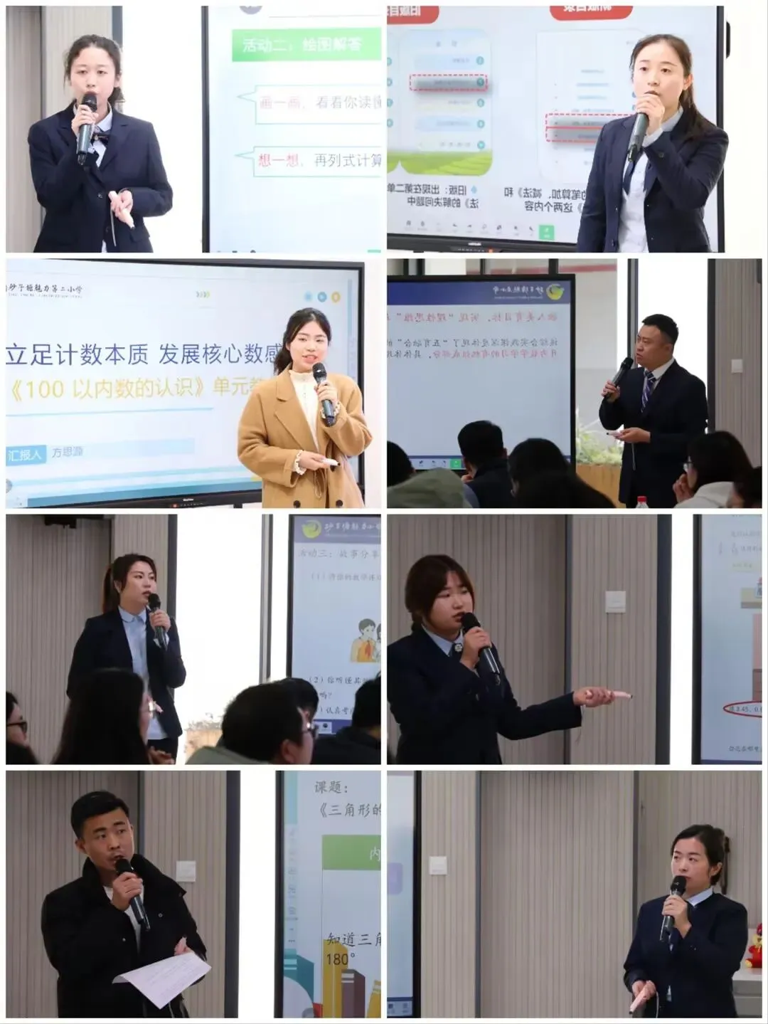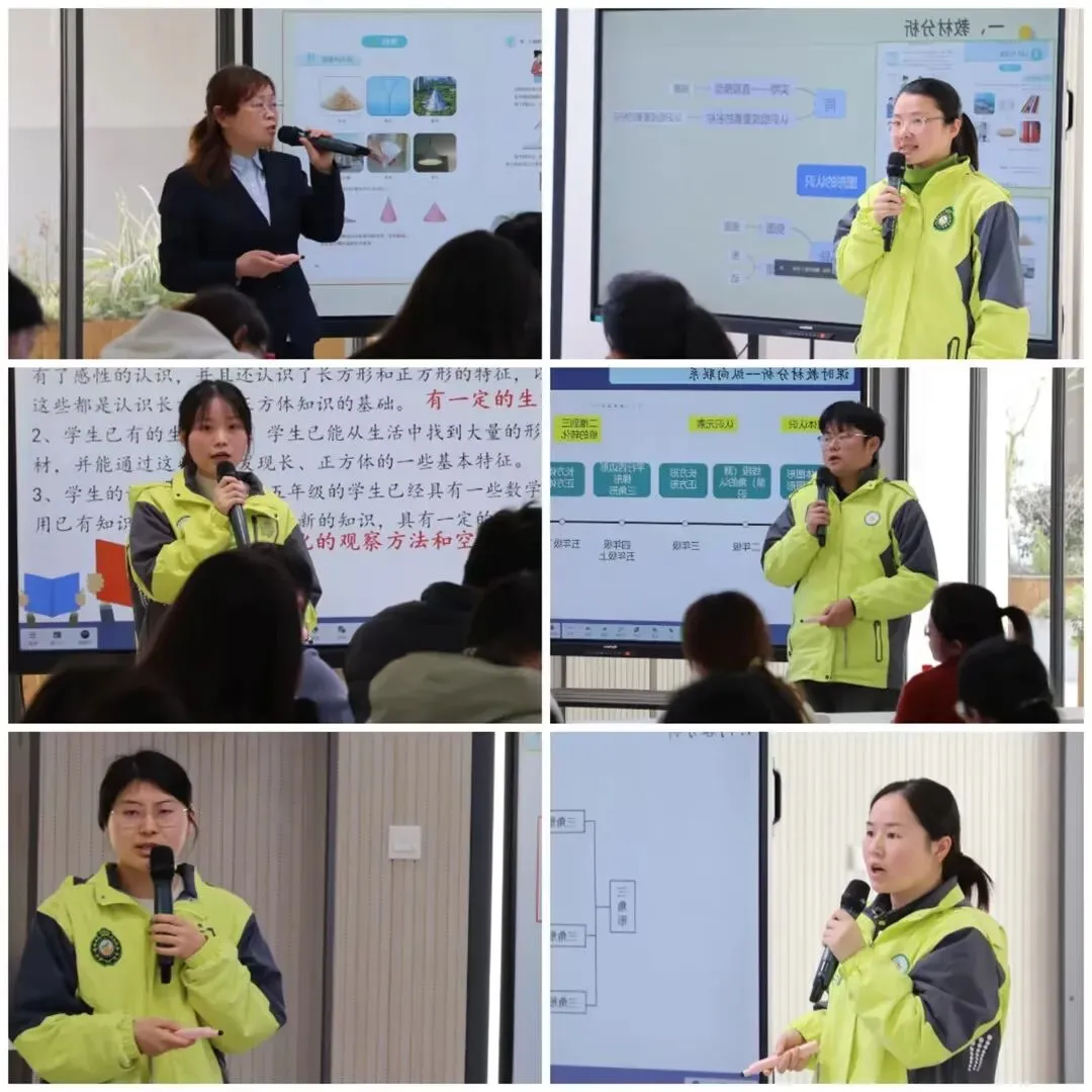数学教材解读比赛以 “单元整体解读 + 课时课例解读” 双师合作模式开展,14 位教师两两协同,一人剖析单元结构与育人价值,一人聚焦课例设计与美育渗透,将抽象数学转化为可感可知的课堂内容。