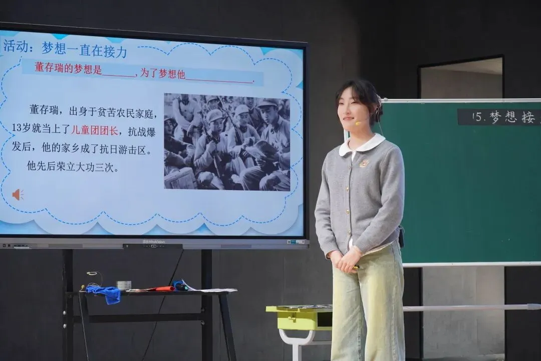 活动伊始,南京市齐武路小学李思桐老师带来一堂精彩的无生试讲《梦想接力棒》。课堂以“梦想接力赛”游戏导入,引导学生在趣味互动中体会团队协作与责任传递的深层含义,自然引出“梦想接力”的主题。随后,借助“时光机”穿越不同时期,带领学生了解中华民族从站起来、富起来到强起来的奋斗历程。“班级梦想接力”环节通过制作梦想卡片,表达对梦想接力者的敬意与心声。整堂课结构清晰、活动丰富,既有情感的唤醒,也有思想的启迪,充分体现了教学的价值引领功能。
