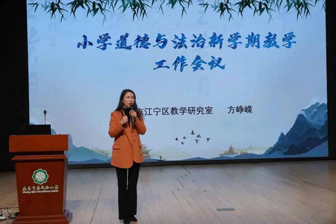活动最后,江宁区教学研究室小学道德与法治教研员方峥嵘老师对本次培训活动进行点评,并对新学期教学工作进行指导。方老师结合示范课和两场讲座,结合小学道德与法治优质课评比,深入剖析新教材理念下如何上好道德与法治课,并就教材使用中的常见困惑提出切实建议,帮助教师理清思路、明确方向。