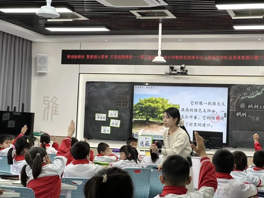 童趣课堂展风采,示范引领促成长。活动伊始,广州市从化区雅居乐小学的陈海玲老师带来《枫树上的喜鹊》优质课例展示。课堂上,陈老师以童趣唤醒童心,巧妙渗透语文学习方法,将核心素养的培养融入课堂每一个环节,让学生在轻松愉悦的氛围中感受语文之美、习得语文能力。生动的课堂设计、灵动的师生互动,不仅展现了教师扎实的教学功底,更为在场教师的日常教学提供了鲜活的实践参考,赢得阵阵掌声。