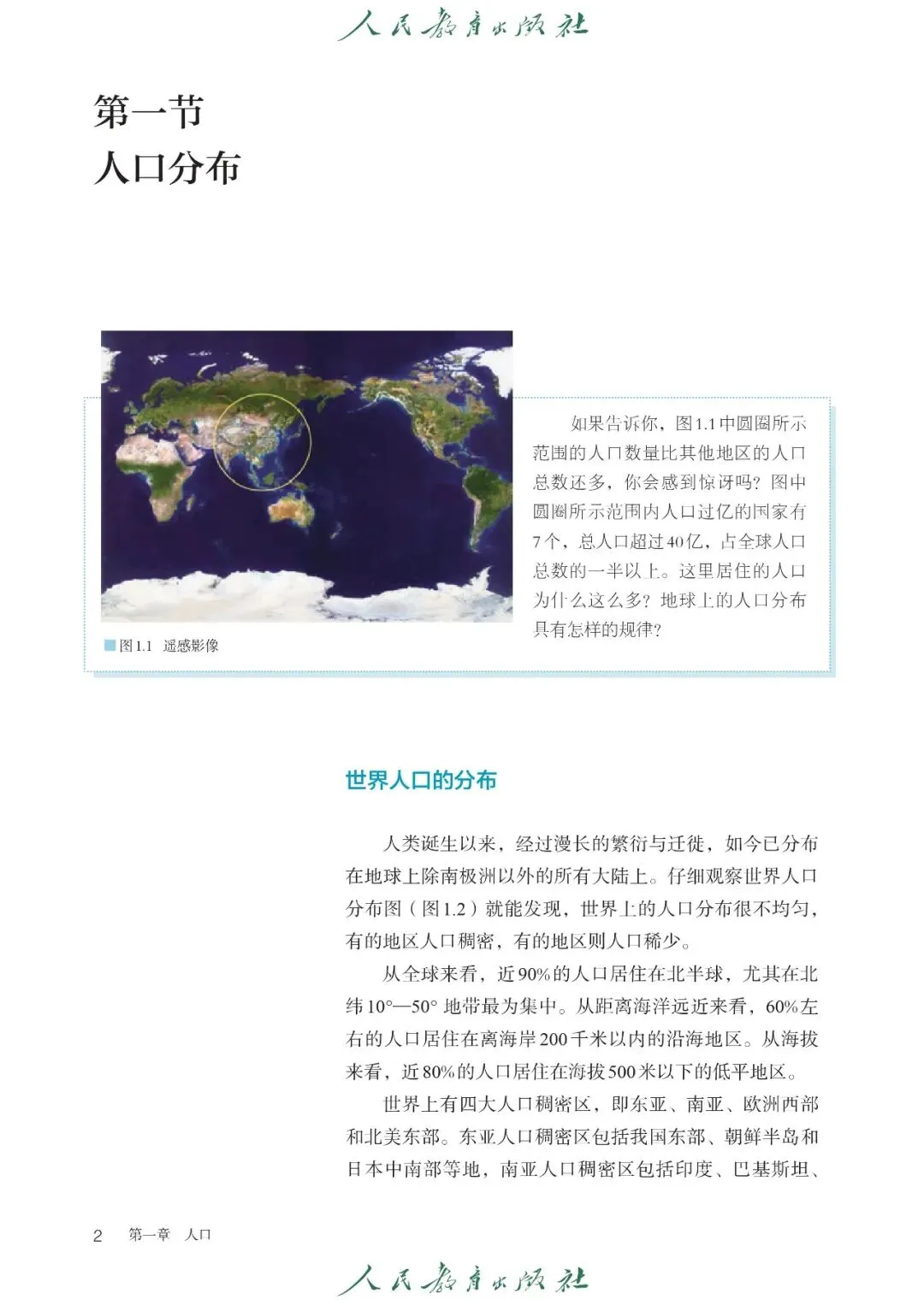 【1】第一章 人口:主要内容包含课文《人口分布》《人口迁移》《人口容量》,核心内容有人口分布规律及影响因素、人口迁移原因及影响、区域资源环境承载力与人口合理容量
