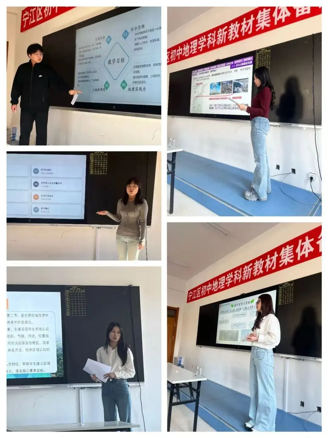 地理学科聚焦七下新教材第八章《我们邻近的地区和国家》。李慧、倪铭语、王诗伟、朱晨旭、马跃五位教师作为中心发言人,细致分享单元整体与课时教学设计,从目标拆解、重难点把握到教学活动设计,均紧扣新课标,贴合学科特点与学生认知规律,搭建清晰教学框架。现场教师围绕教学环节、探究活动、学法指导等热烈研讨,在思维碰撞中完善思路。教研员马晓曼作针对性总结,提出教学统筹优化建议,助力教师精准驾驭新教材,提升区域地理教学实效性。