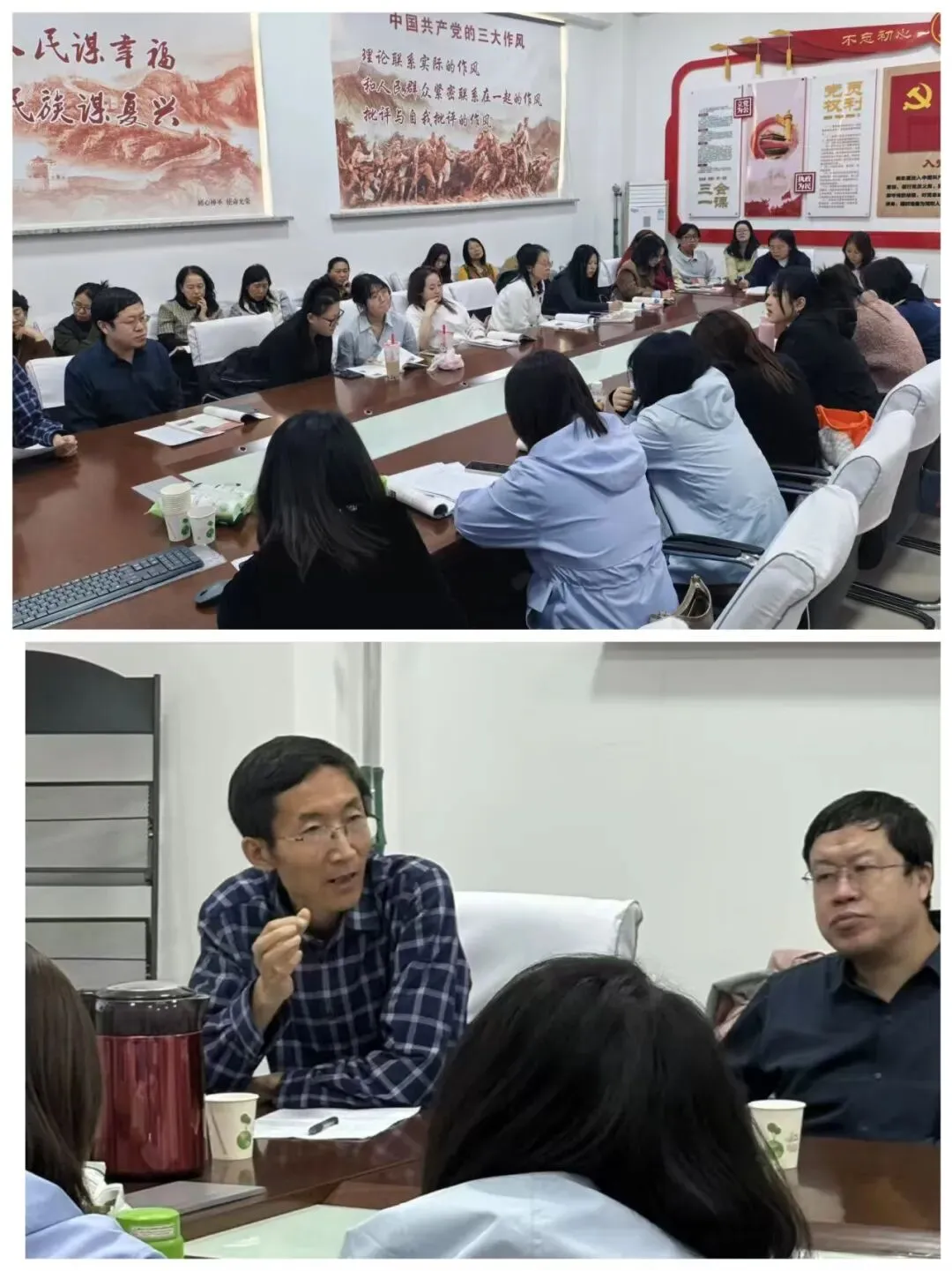 历史学科聚焦八年级下册第二单元《社会主义建设道路的探索》,张晓南、王莹莹、庄佳凝、李倩老师围绕第二单元整体和第6、7课进行了中心发言。他们从教材变化、单元整体分析、课时实施多个维度逐一展开讲解,老师们从学情分析、教学目标制定、重难点确定、教学方式方法的选择、教学过程、作业设计等环节进行了积极的探讨,研讨过程热烈而充实。教研员王科生作“聚焦精准备课,抓实历史教研关键点”的总结时,强调要从备教材变化、备核心素养、备重难点突破、备学情与分层、备资源共建五个方面加强集体备课,为加强集体备课的实效性指明了方向。