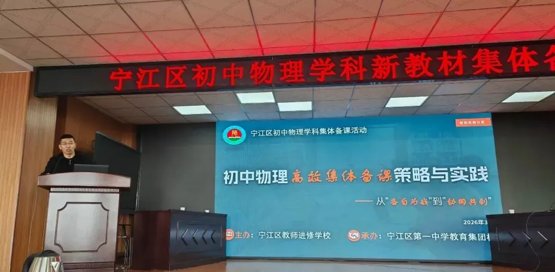 为深入贯彻落实新课程标准,切实提升教师对新教材的理解与运用能力,保障新教材教学工作落地见效,2026年3月16日至18日,宁江区教师进修学校精心组织开展全区初中新教材集体备课活动。七年级数学、地理、生物学,八年级道德与法治、英语、物理、历史七个学科的共280余位教师,齐聚实验中学、第一中学,共研教材、共探教法、共促成长。