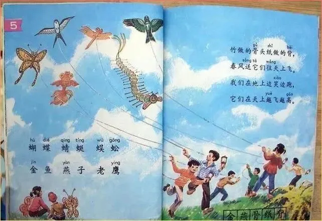 看到.放.风筝那一课,.耳边仿佛又响起了春天.里孩子们的欢.笑.声。金鱼,燕子,老鹰,各式各.样的风筝飞上天,我们在田野里奔.跑.,线轴在手里飞快地转动,那种快乐是现在玩手机游戏永远比不了的。