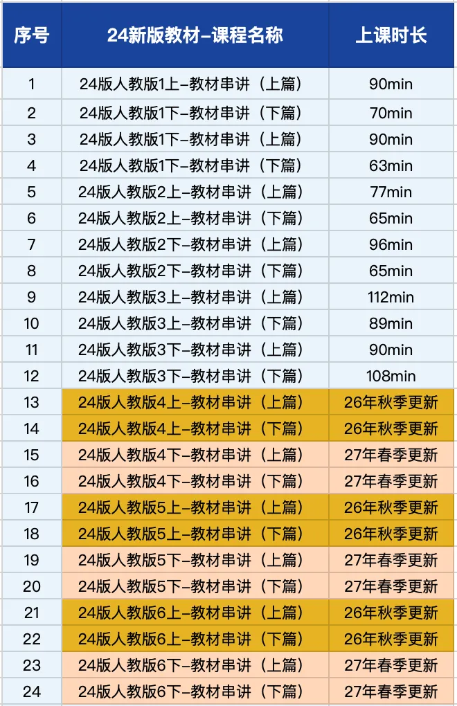 (下⬇️:新版人教版为例,每节课1~2小时,具体时长以实际上课为准)