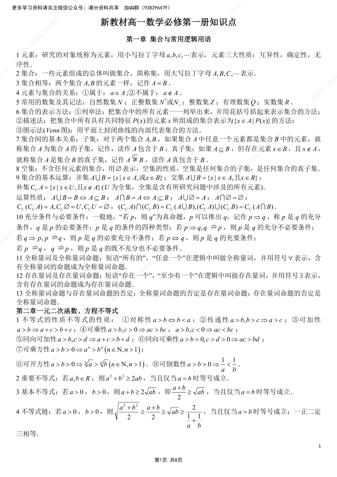 42.高中数学人教A版(2019)必修第一册知识点总结(pdf分享)